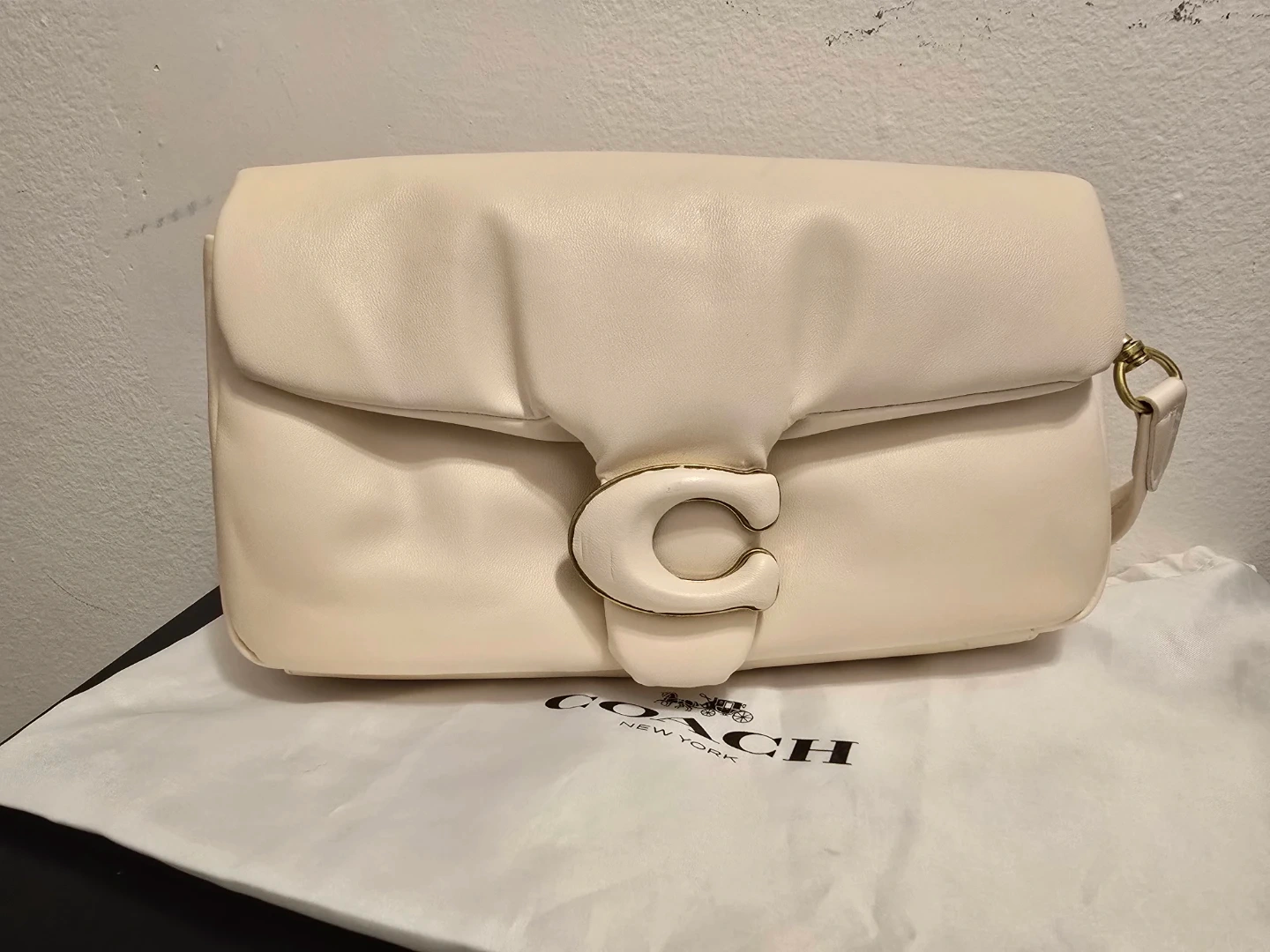 Cream-colored leather shoulder bag with gold hardware. Comes with a dust bag. Very good condition! Unfortunately I lost the long strap, since I only like to use it as a shoulder bag! SORRY!π