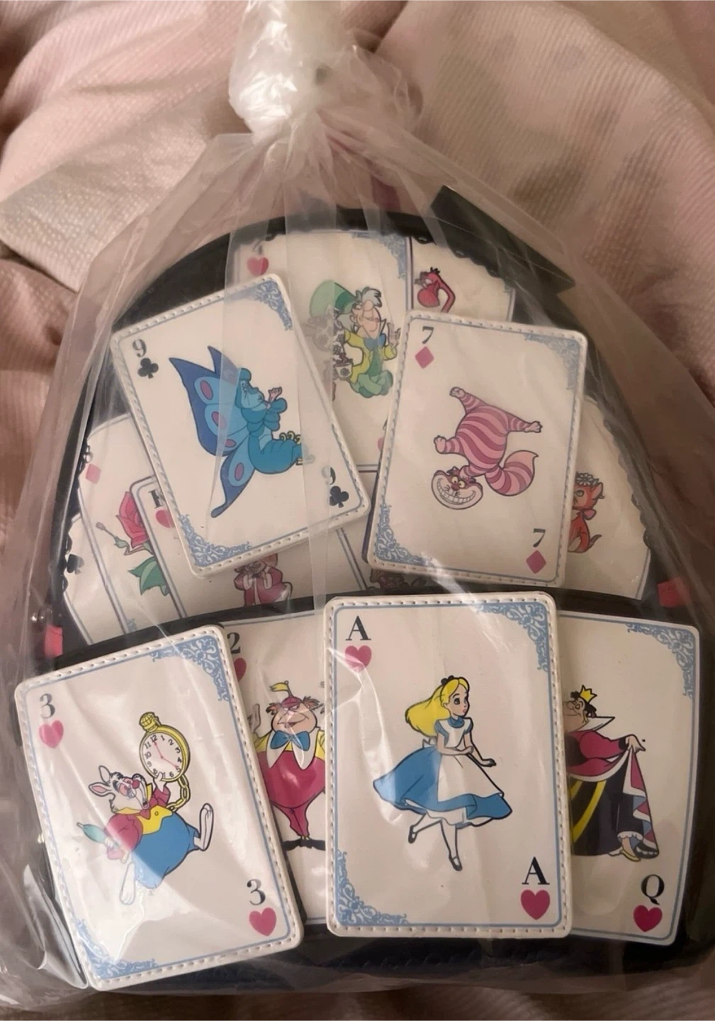 Brand new and still in packaging with tag. Alice in Wonderland Character Playing Cards Mini Backpack