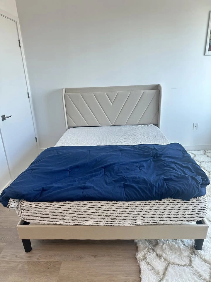Bought this bed frame and mattress on Amazon yesterday, but the Queen size is way too big for my space. Both are brand new and never used! Bed: (Queen + Beige) ($160 on amazon) https://www.amazon.com/dp/B0CB8P7933/ref=dp_iou_view_item?ie=UTF8&th=1 Mattress: ($200 on amazon) https://www.amazon.com/dp/B0CKYZ4DJB?ref=ppx_yo2ov_dt_b_fed_asin_title&th=1 Size: Queen | Style: 10" | Pattern Name: Green Tea Cooling (Small Box) Willing to sell seperately. I will disessemble most of the bed and make it easy for pickup.