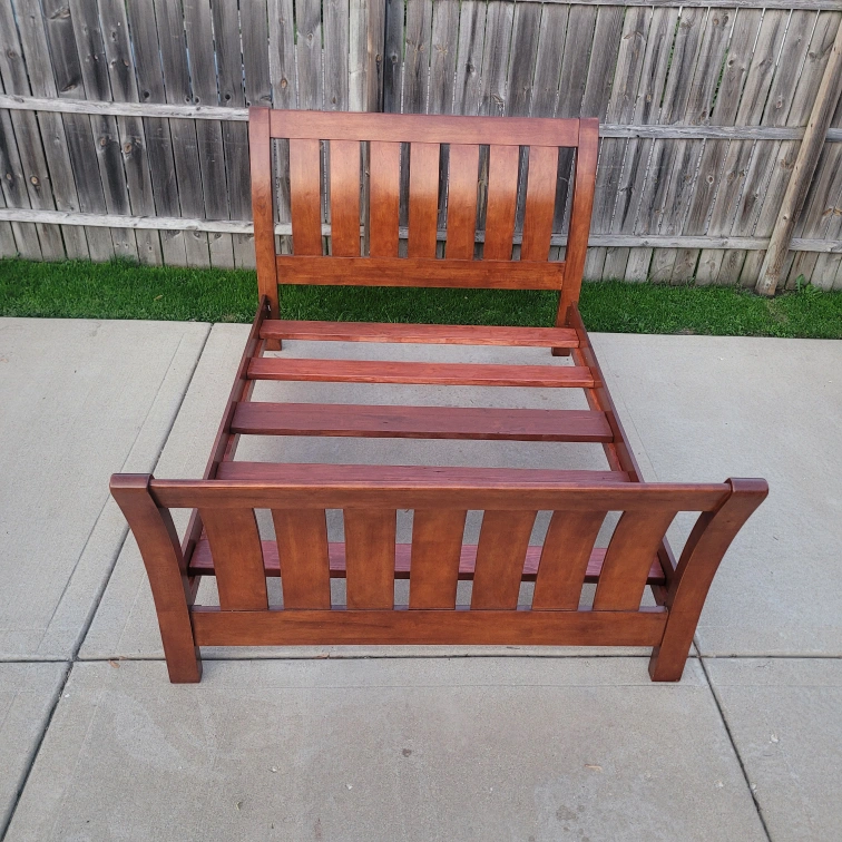 20Selling a solid Queen wooden bed frame in great condition! It's a sturdy piece with a beautiful finish. Perfect for adding a touch of warmth to your bedroom and Free delivery and set up within a 10 mile radius.