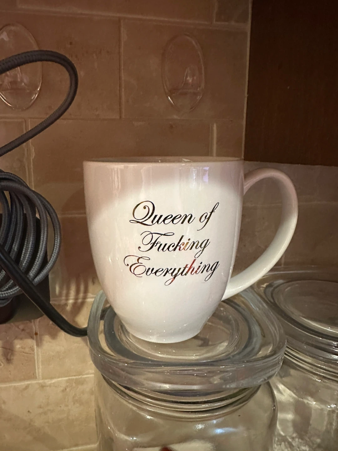 10Selling a fun mug that says 'Queen of Fucking Everything'! It's in great shape and ready for a new home