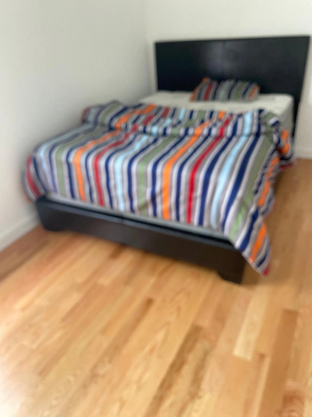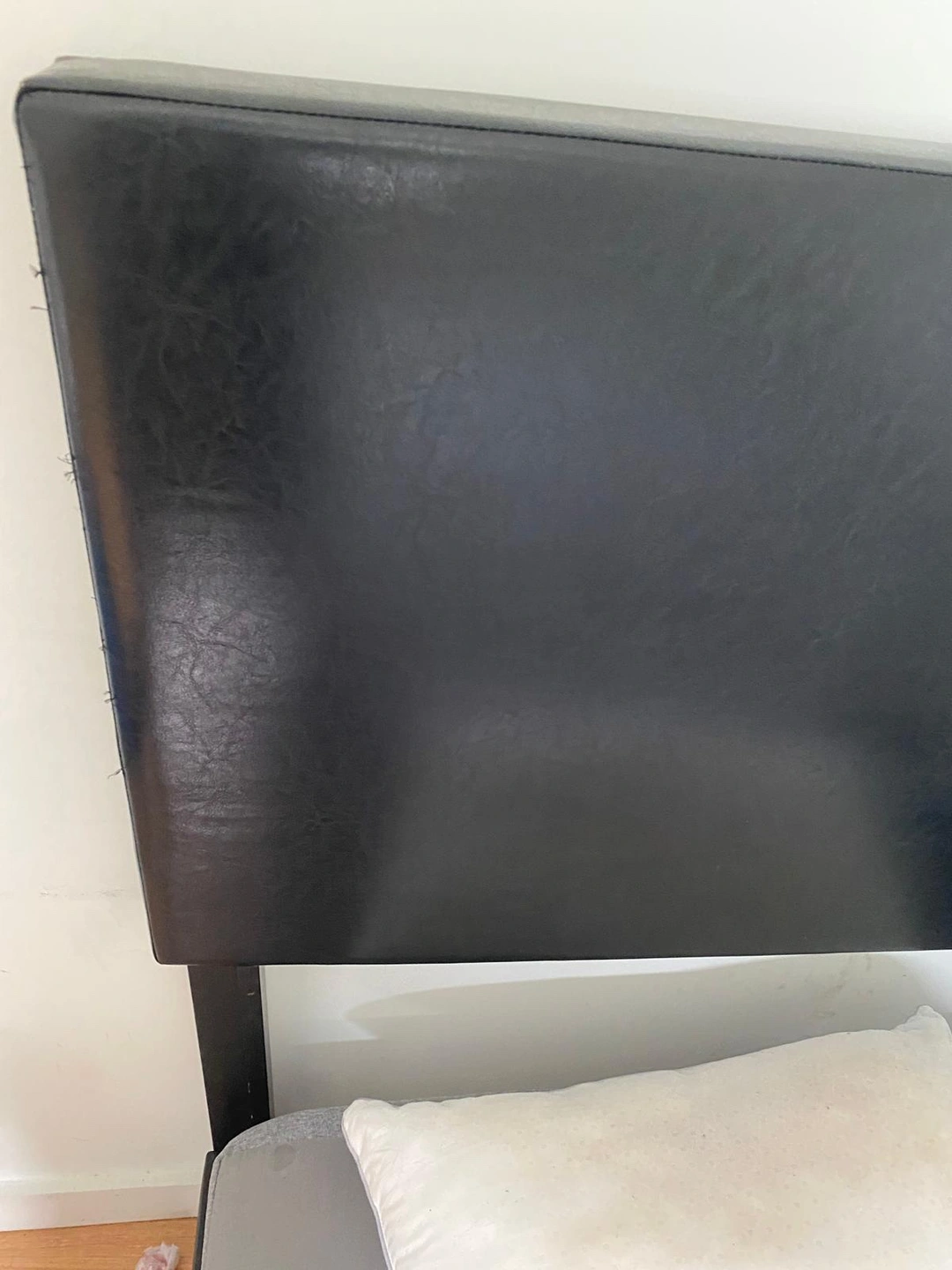 Black faux leather bedframe, and mattress in very good condition pick up only