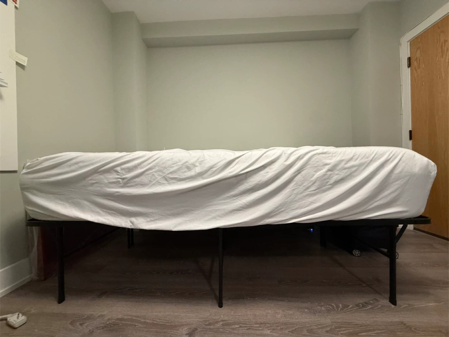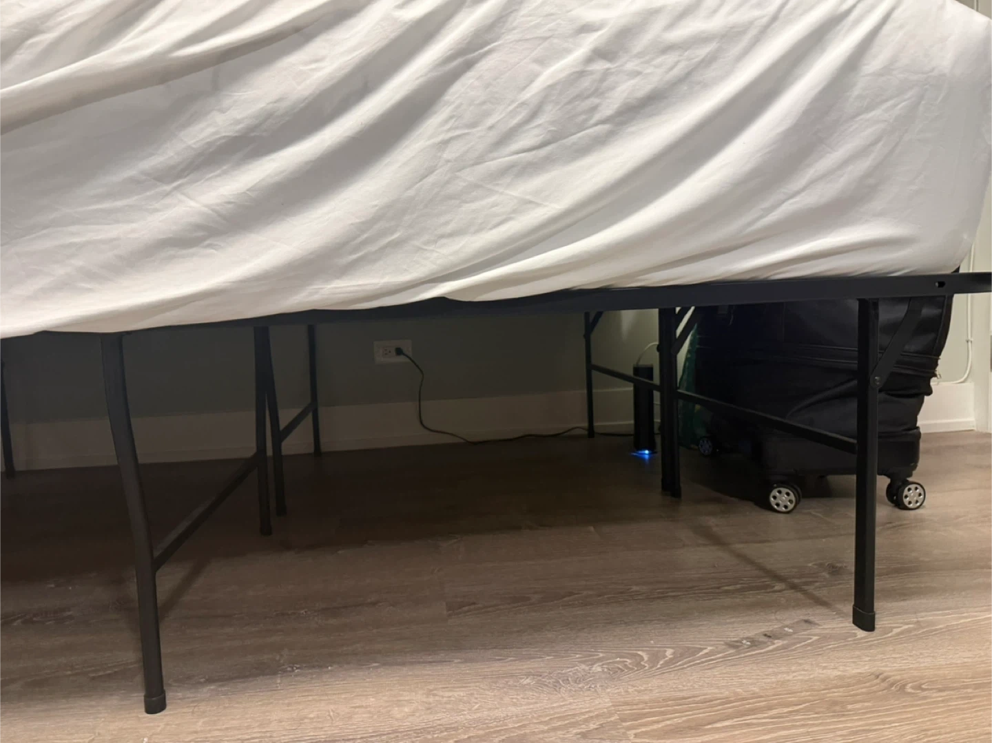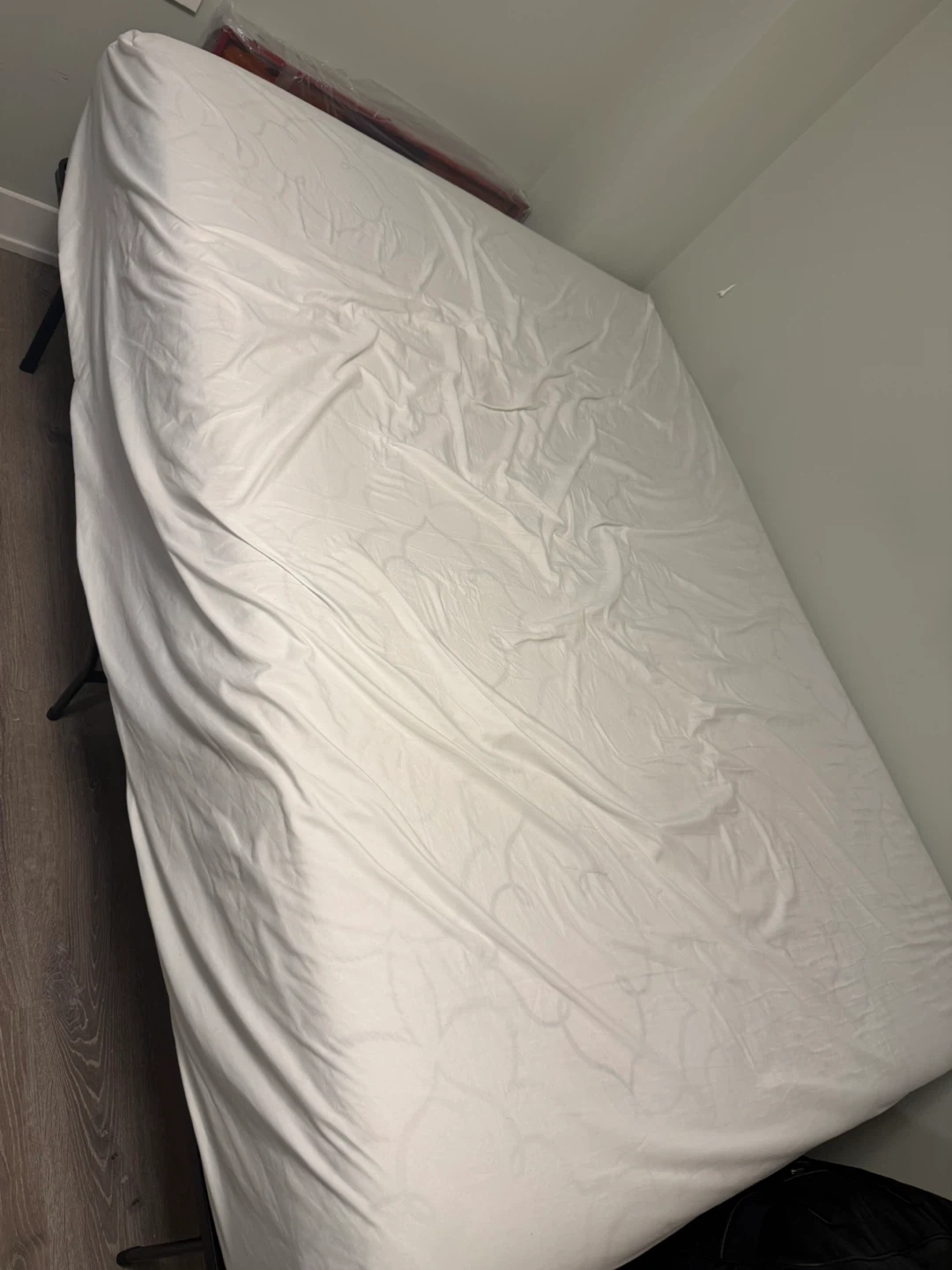 68Selling a queen size bed with a black metal frame. It's in great condition and ready for a new home! Used it only for two month. The sturdy frame is easy to assemble and provides excellent support for your mattress :) Also, you can put your stuff under the bed! Price is negotiable.