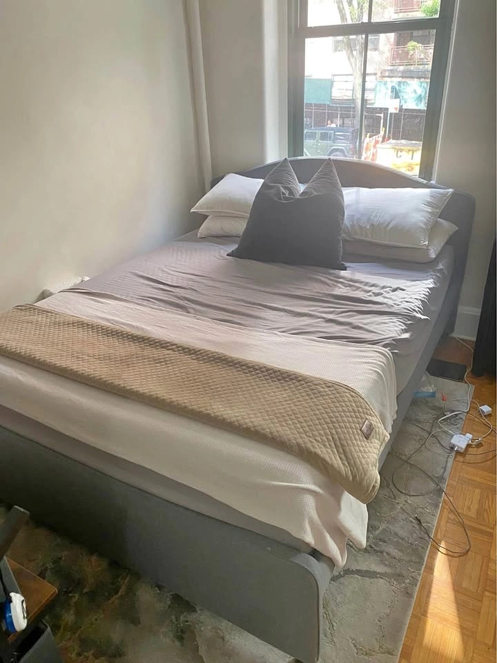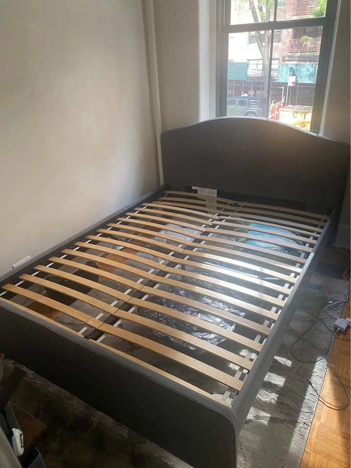 Great queen sized bed (1.5 years old) just upgraded to a hydraulic one for more storage. UES 79/York pick up (already disassembled, bolts in all the holes, labelled to make it quick and simple, will take about 15 mins to put back together).