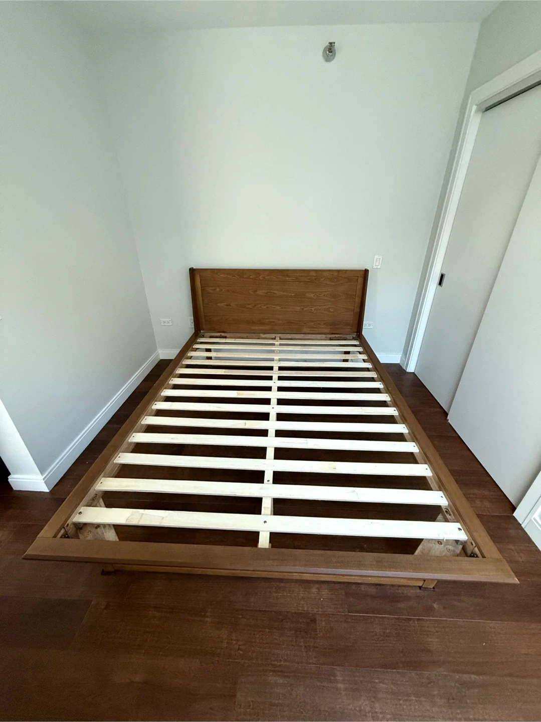 84Selling a queen size wooden bed frame. It’s in excellent condition and ready for a new home! Bed frame - $140 Mattress: SSecretland 10’ cooling gel memory foam mattress (excellent condition) - $75