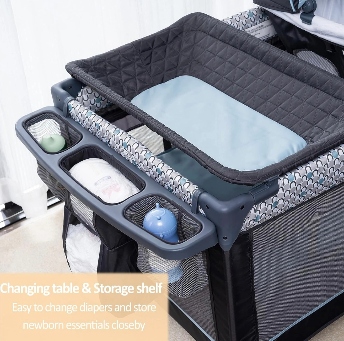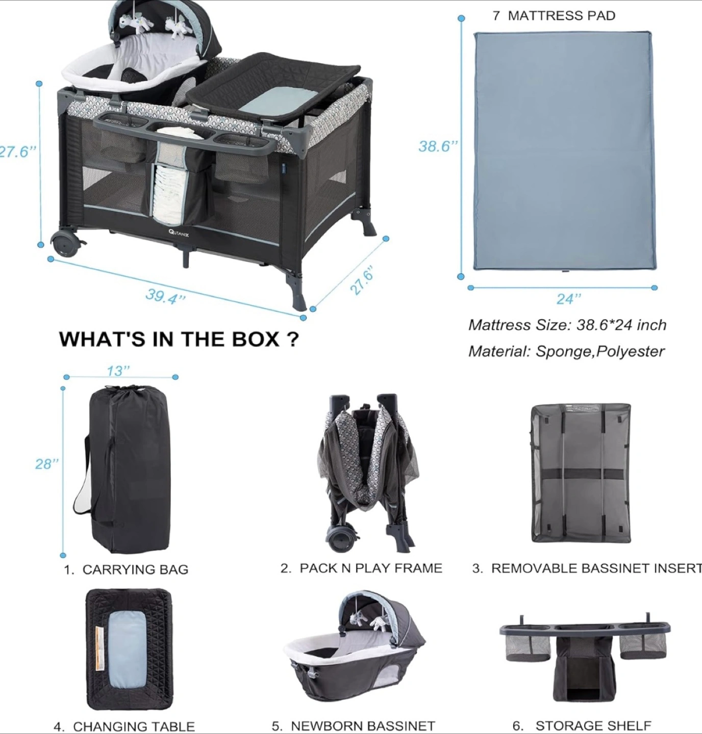 83This Pack and Play 5-in-1 deluxe nursery center features not only a playard but also a portable bassinet with comfortable mattress and newborn napper with canopy for babies 0-3 years(0-33lbs),Perfectly cater to your many needs and accompany your baby's growth, 2 cute soft hanging toys to catch your baby's eyes. This is for local pick up only ….