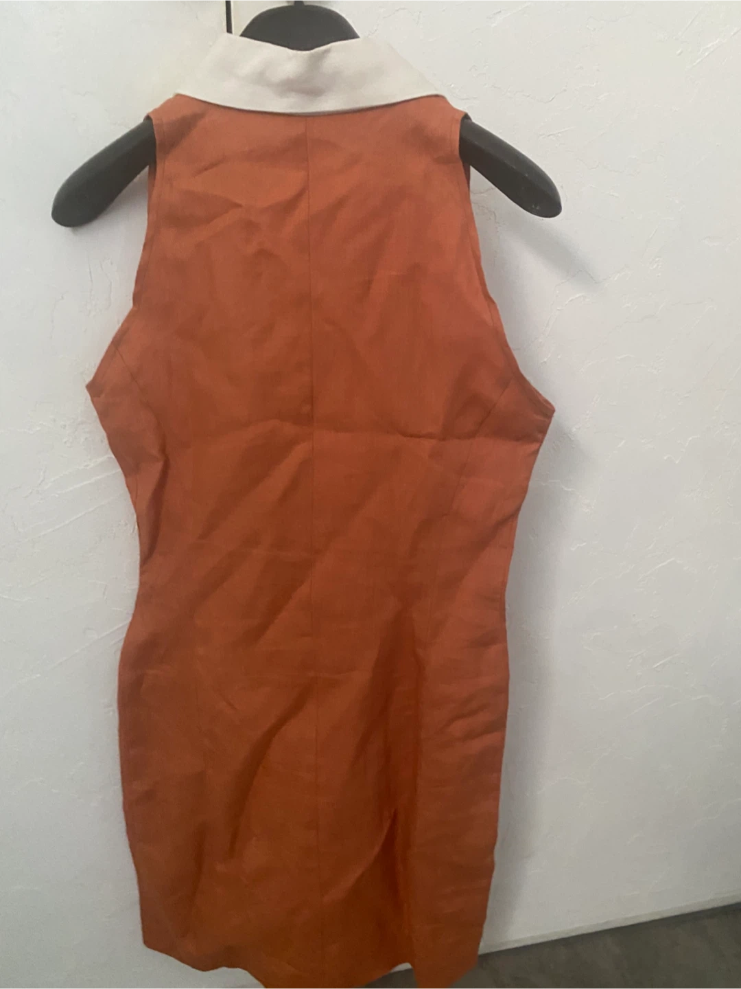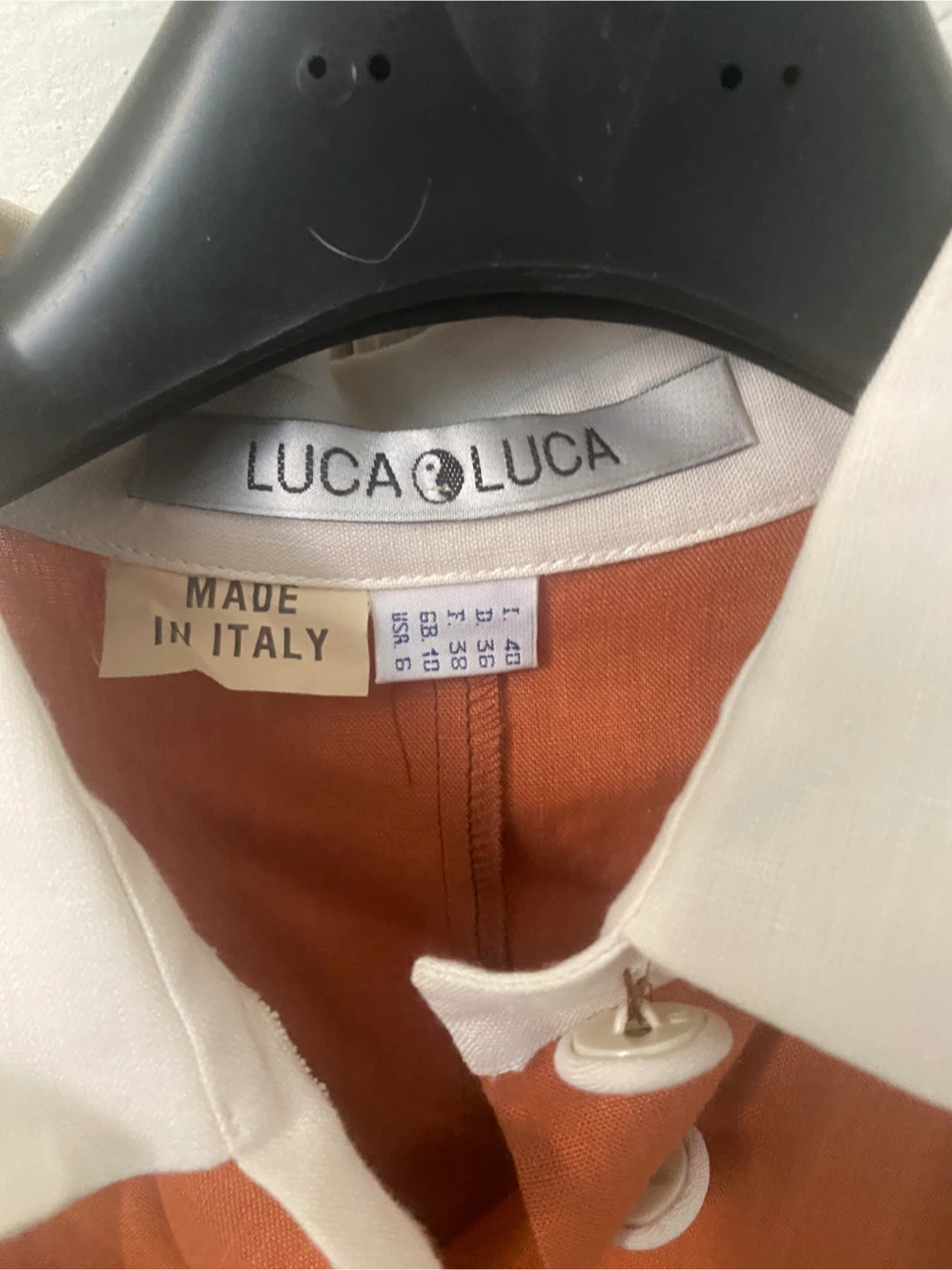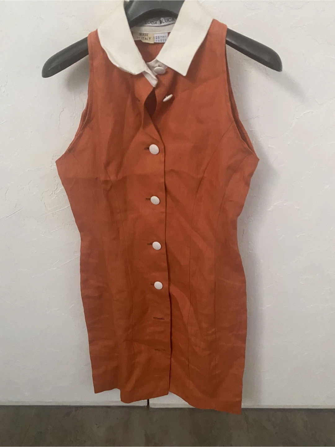 This is a sleeveless dress by LUCA LUCA. Made in Italy. It features a white collar and white button front. Size is 40. never worn wrinkled cause it’s been folded in a bag for a long time. It’s in perfect condition.