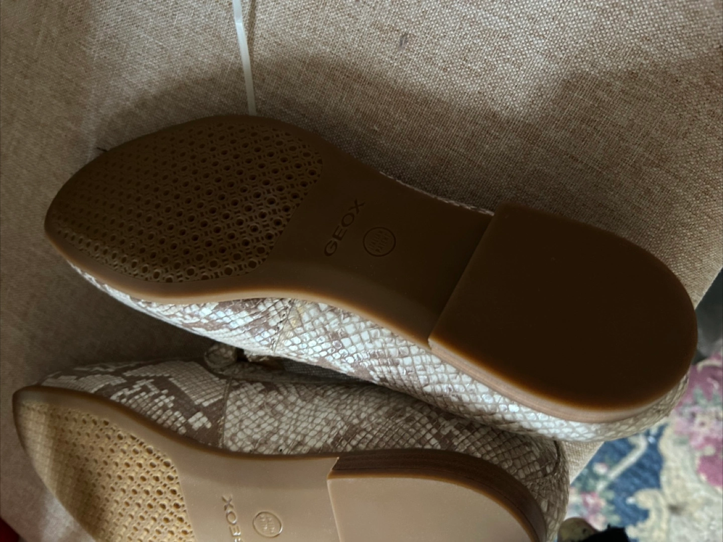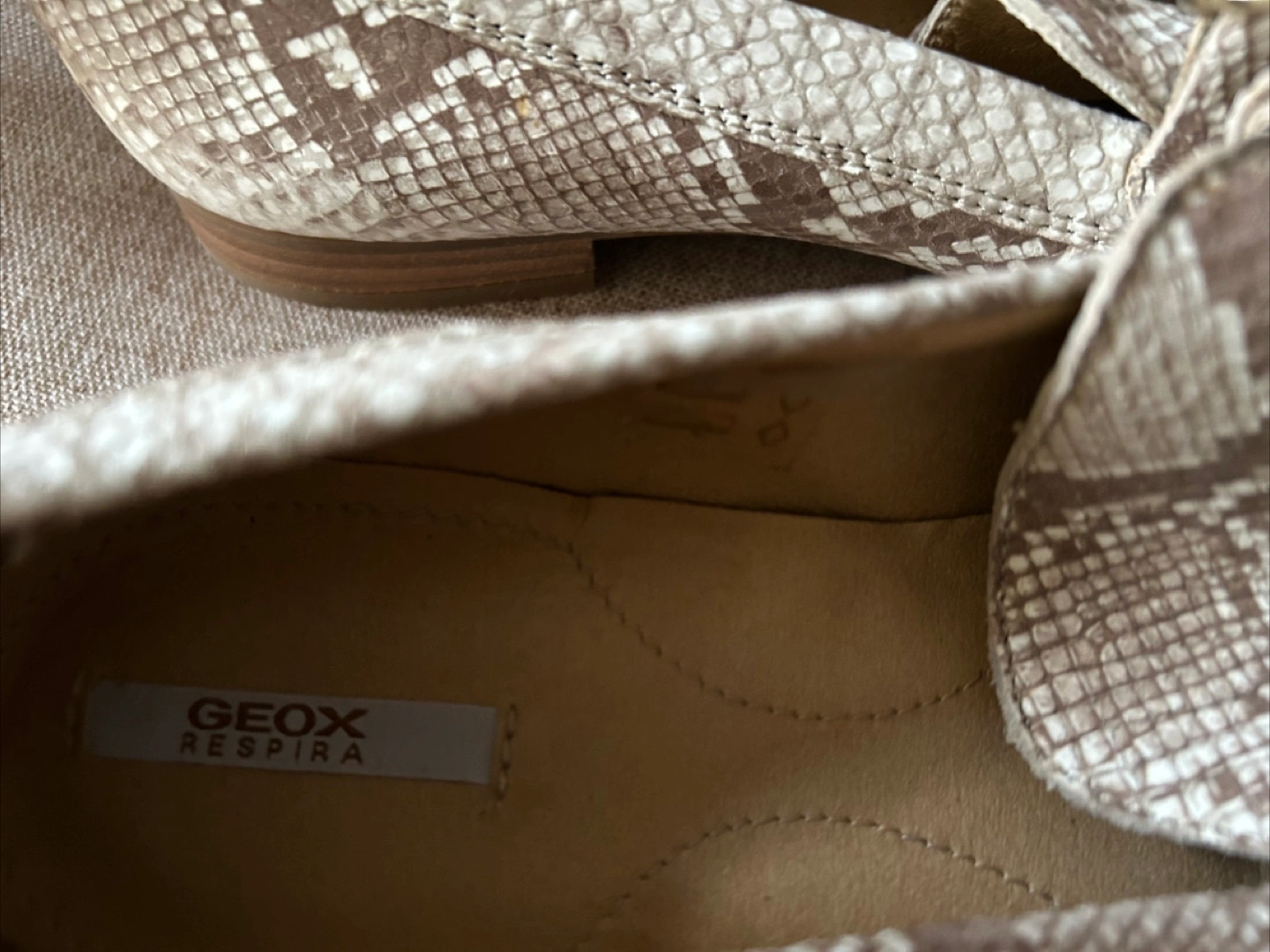 New Geox loafers feature a stylish snake print design. Color brown/tan and white. They are in mint condition . Size 9M. The brand is known for its breathable technology, so your feet will stay comfortable all day long