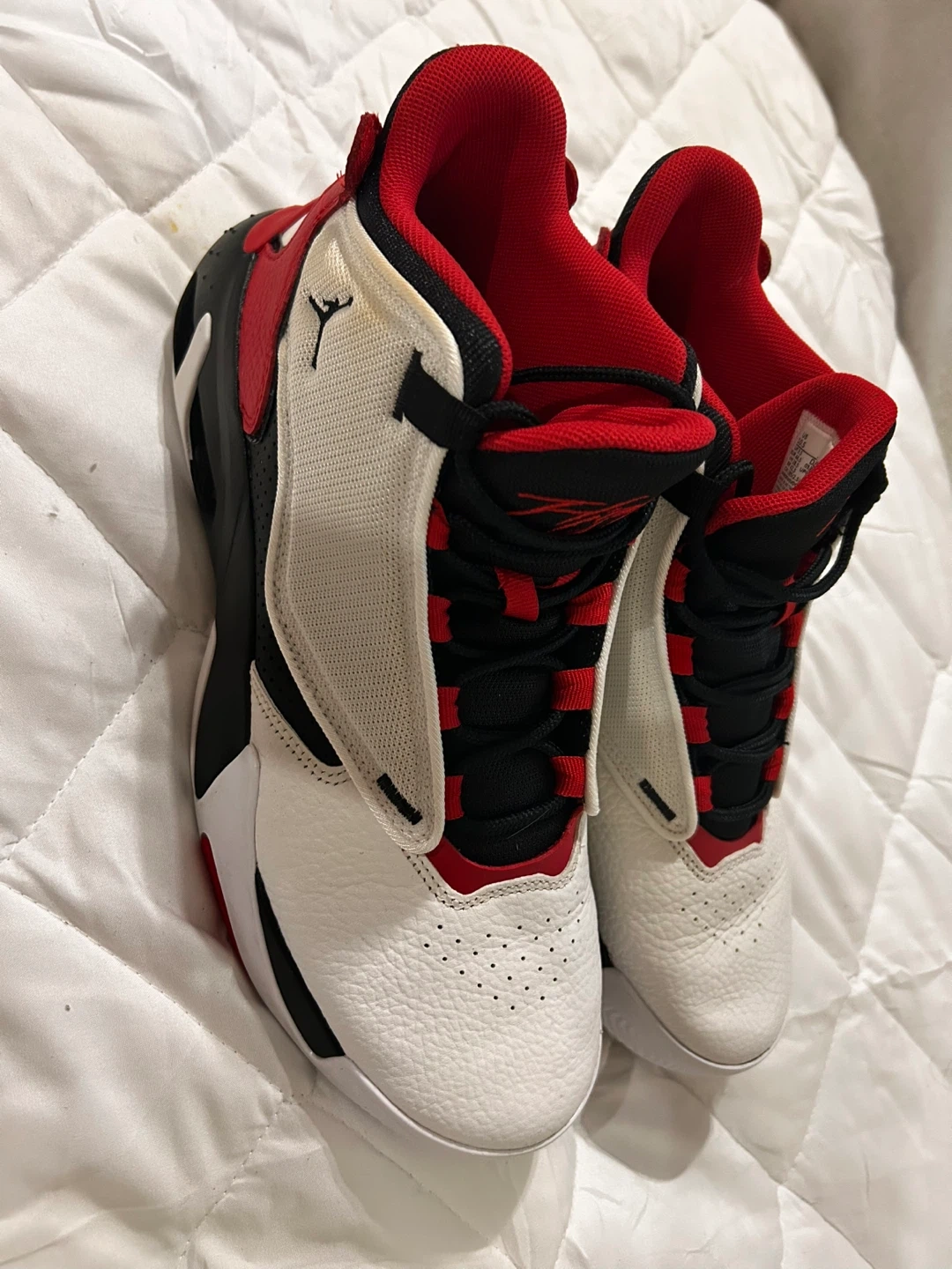 Selling a pair of Jordan Flight Club '91 sneakers in red, white, and black. They're in great condition and ready for a new home!