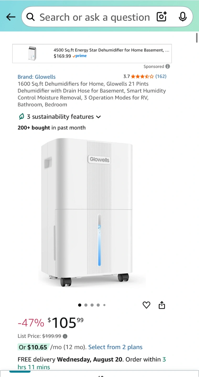 Glowells Dehumidifier 1600 sqf - Brand New!