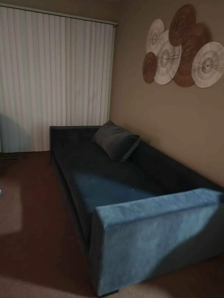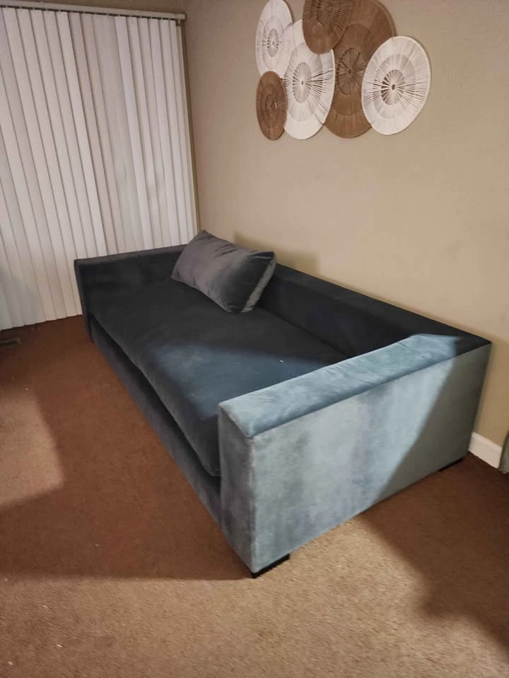 72Modern line upholstered in a stunning blue velvet-style fabric. This sofa features an oversized deep seat, offering exceptional comfort for lounging, watching movies, reading, or hosting guests. Includes one matching oversized back pillow. The clean, modern silhouette makes it a perfect fit for contemporary, minimalist, and luxury-style homes. βοΈ Condition Overall in good used condition. There is a small imperfection on the back corner (shown in the photo), but itβs barely noticeable once placed against a wall and does not affect use. βοΈ Features Authentic CB2 furniture piece Deep, oversized seat for maximum comfort Soft velvet-like fabric Modern, clean-line design Solid and durable build Perfect for living rooms, apartments, studios, or basements Includes 1 matching back pillow Open to offers! π¬ Standard deep-seat 3-seater (Exact measurements available upon request) π² Price: $380 β Or Best Offer π Location: Aurora, IL If you have any questions or would like to schedule pickup, feel free to message me.