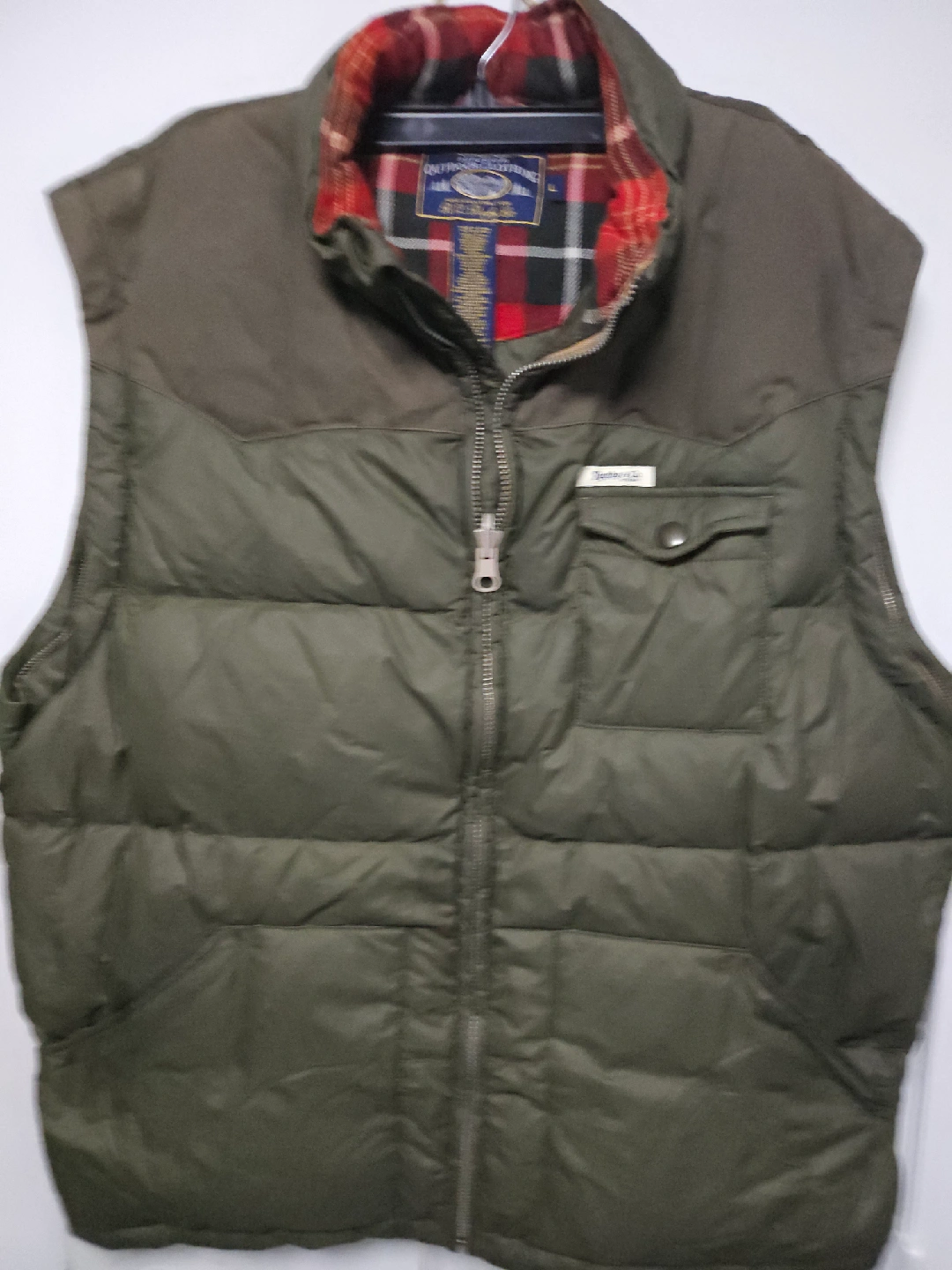 Selling a R.L. Rugby Co. puffer vest in size L. It's in great condition and ready for a new home! The vest features a stylish outdoor clothing design with a plaid lining.