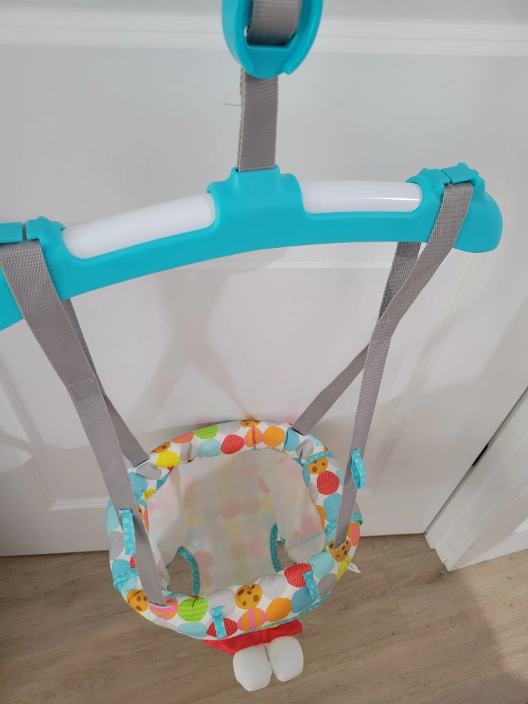 This hanging baby bouncer fits onto most doorways and offers loads of fun encouraging baby to strengthen little legs whilst having fun. The sturdy frame clamp provides a secure fit and the height adjustable strap means it'll grow with your little one as they jump and bounce until they had enough!