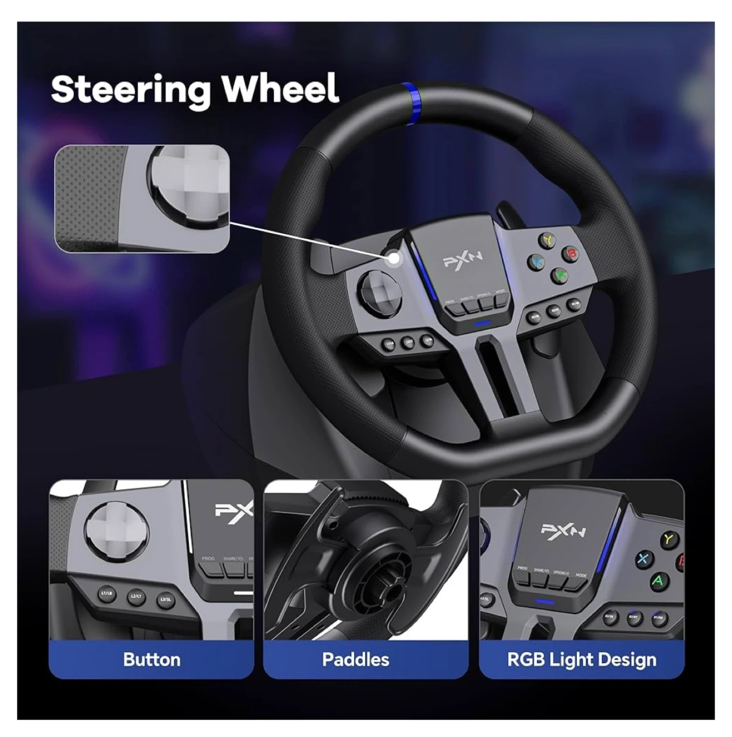 PXN Gaming Steering Wheel with Paddles and RGB Lighting