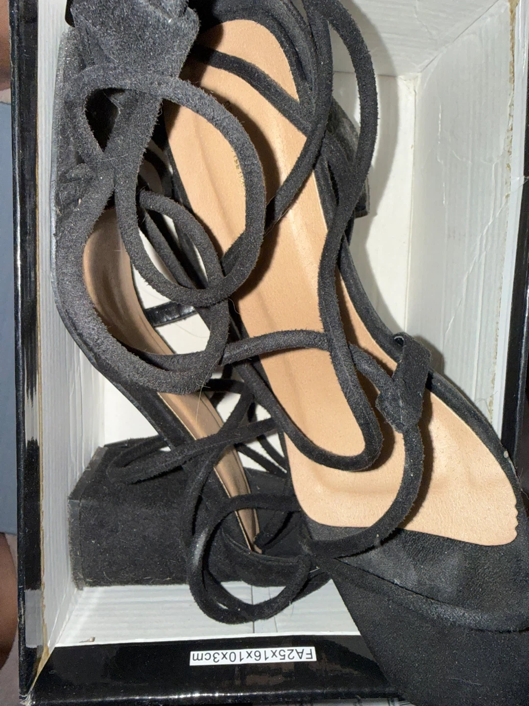 They feature a wraparound ankle tie closure. Suede material. Size 7