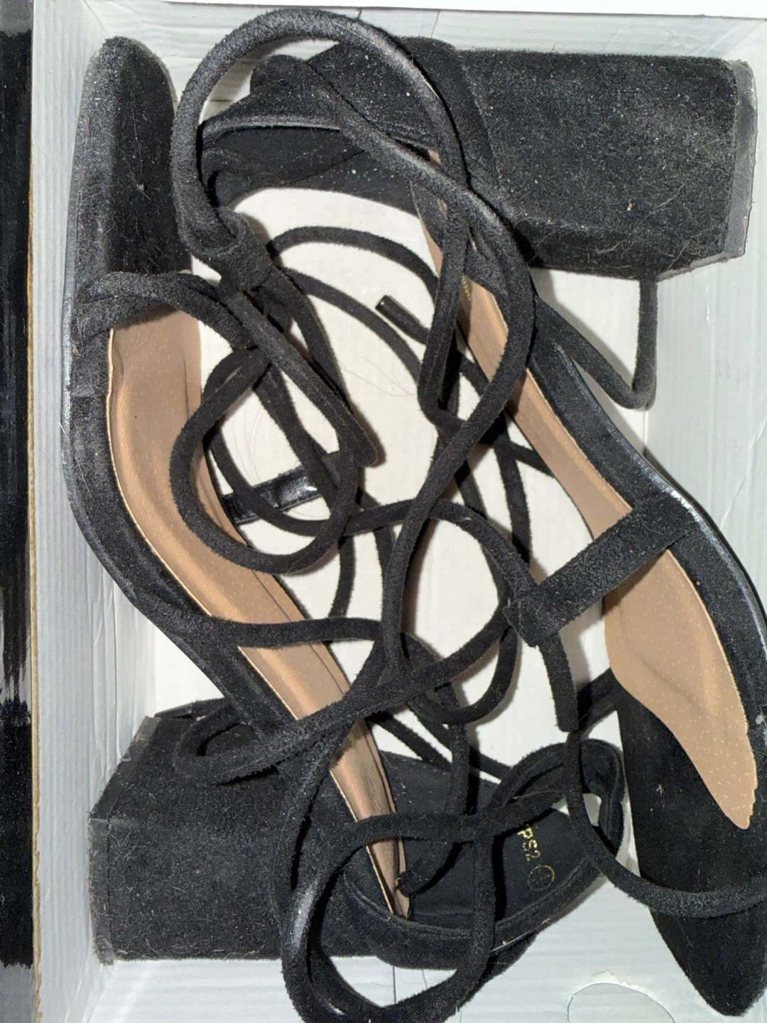 They feature a wraparound ankle tie closure. Suede material. Size 7