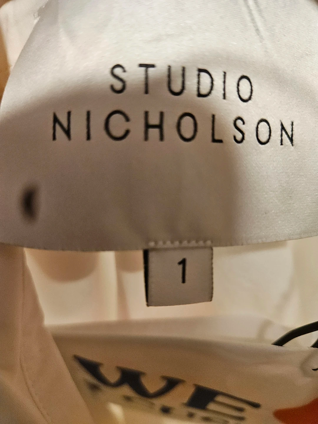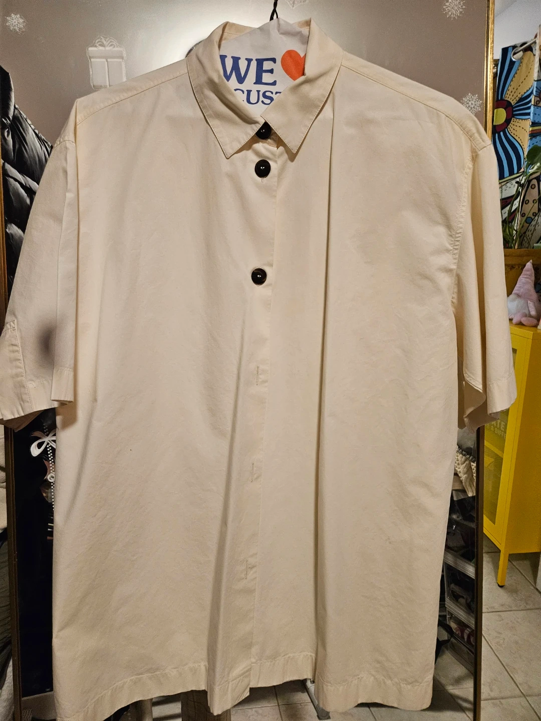 Selling a Studio Nicholson short-sleeve shirt in a lovely cream color! It's a size 1 and made from a comfortable material. Perfect for a relaxed, stylish look!