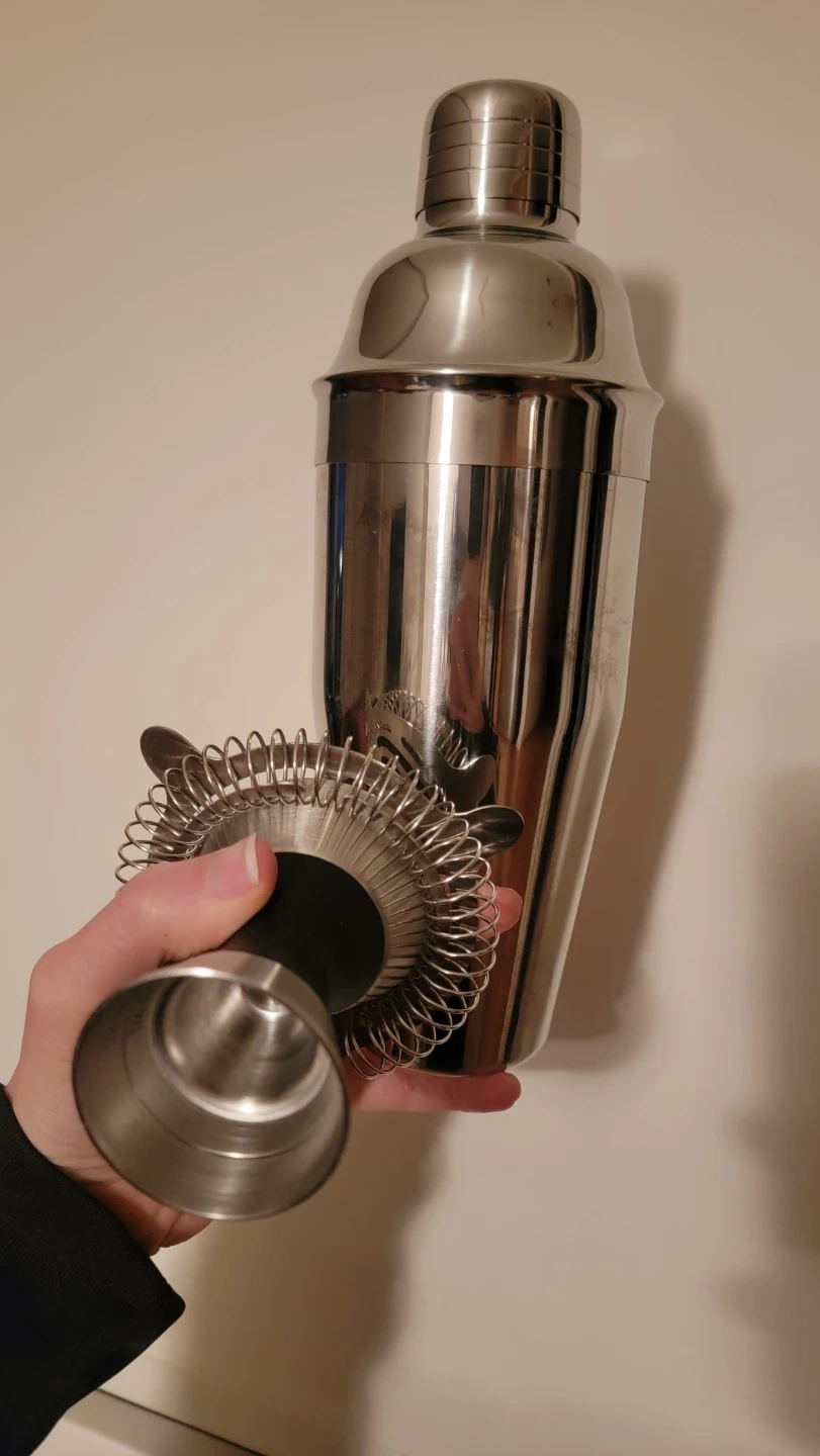 This stainless steel cocktail shaker set includes a shaker tin and a Hawthorne strainer. It's perfect for making your favorite mixed drinks at home. The shaker has a capacity of approximately 18 oz. Great for any home bar enthusiast!