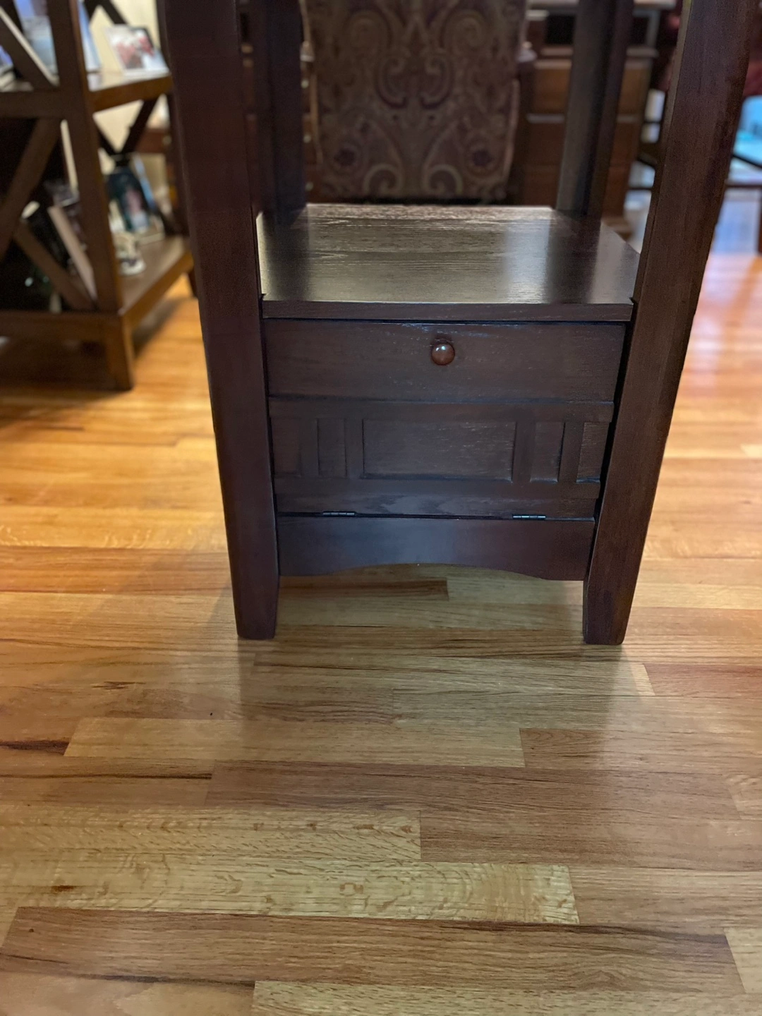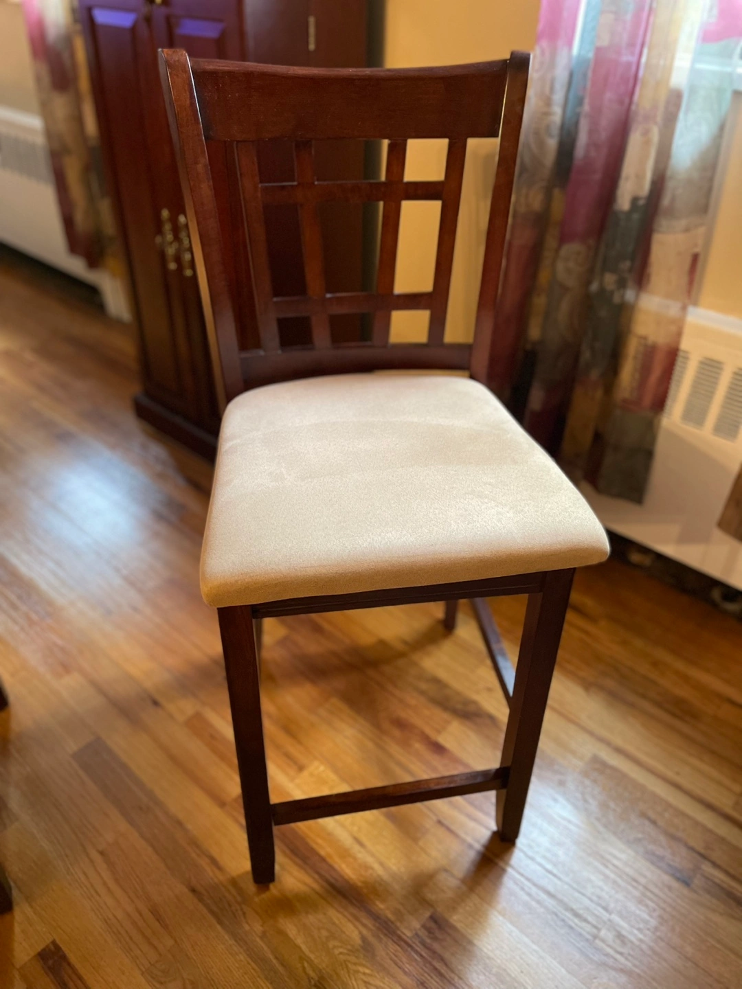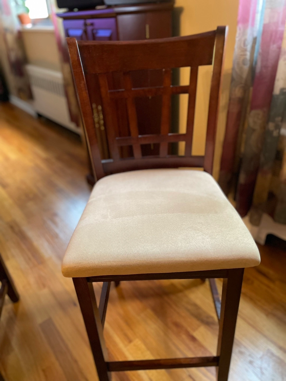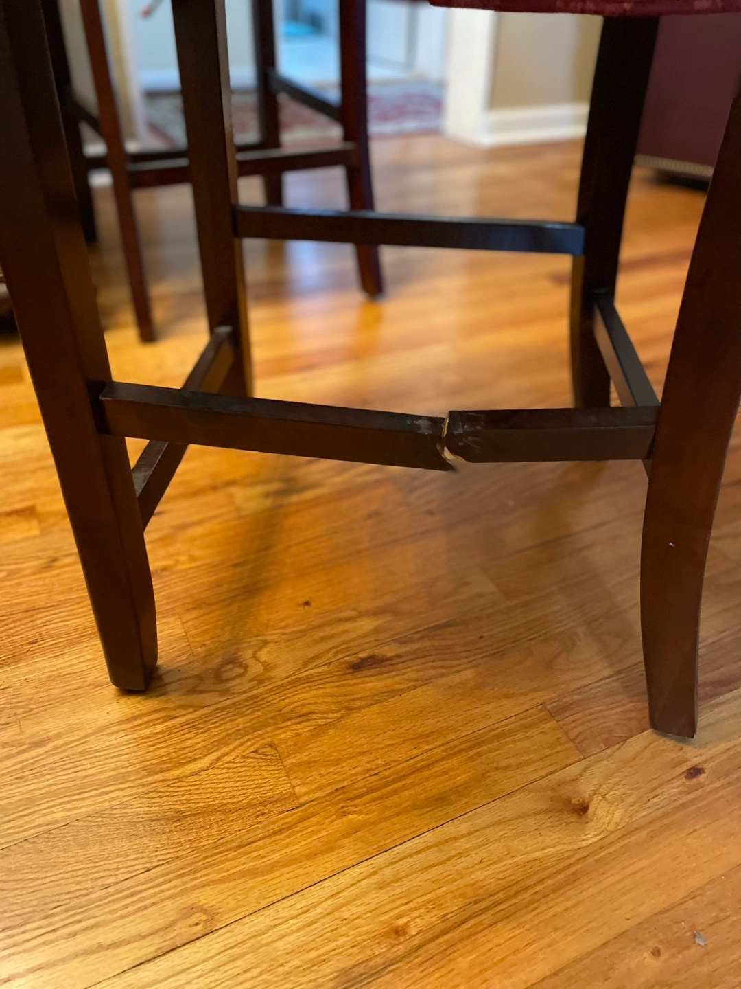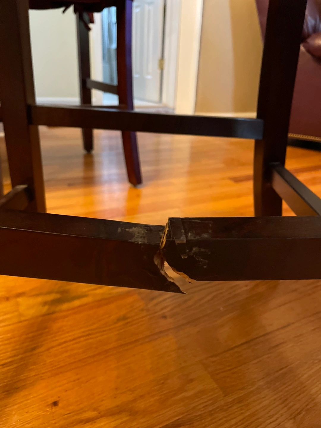 All in great condition. Espresso color. Everything but one chair is in mint condition. One chair has a cracked side foot rest (see pictures). It does not affect the stability of the chair.