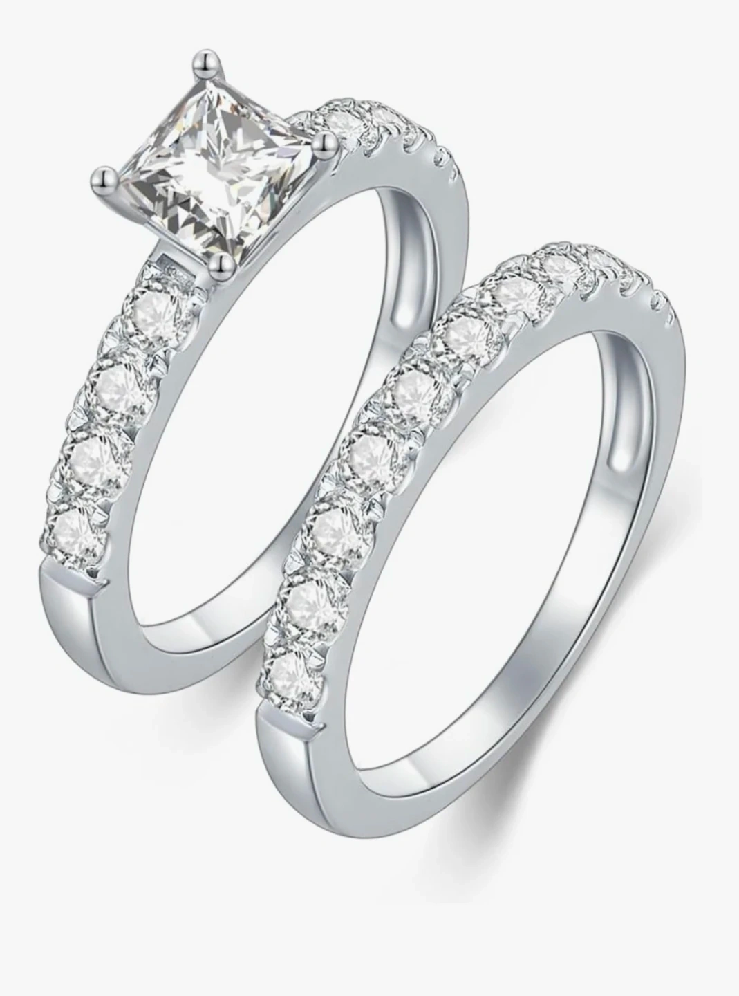 Sterling Silver Moissanite Pair Of Rings Size 6