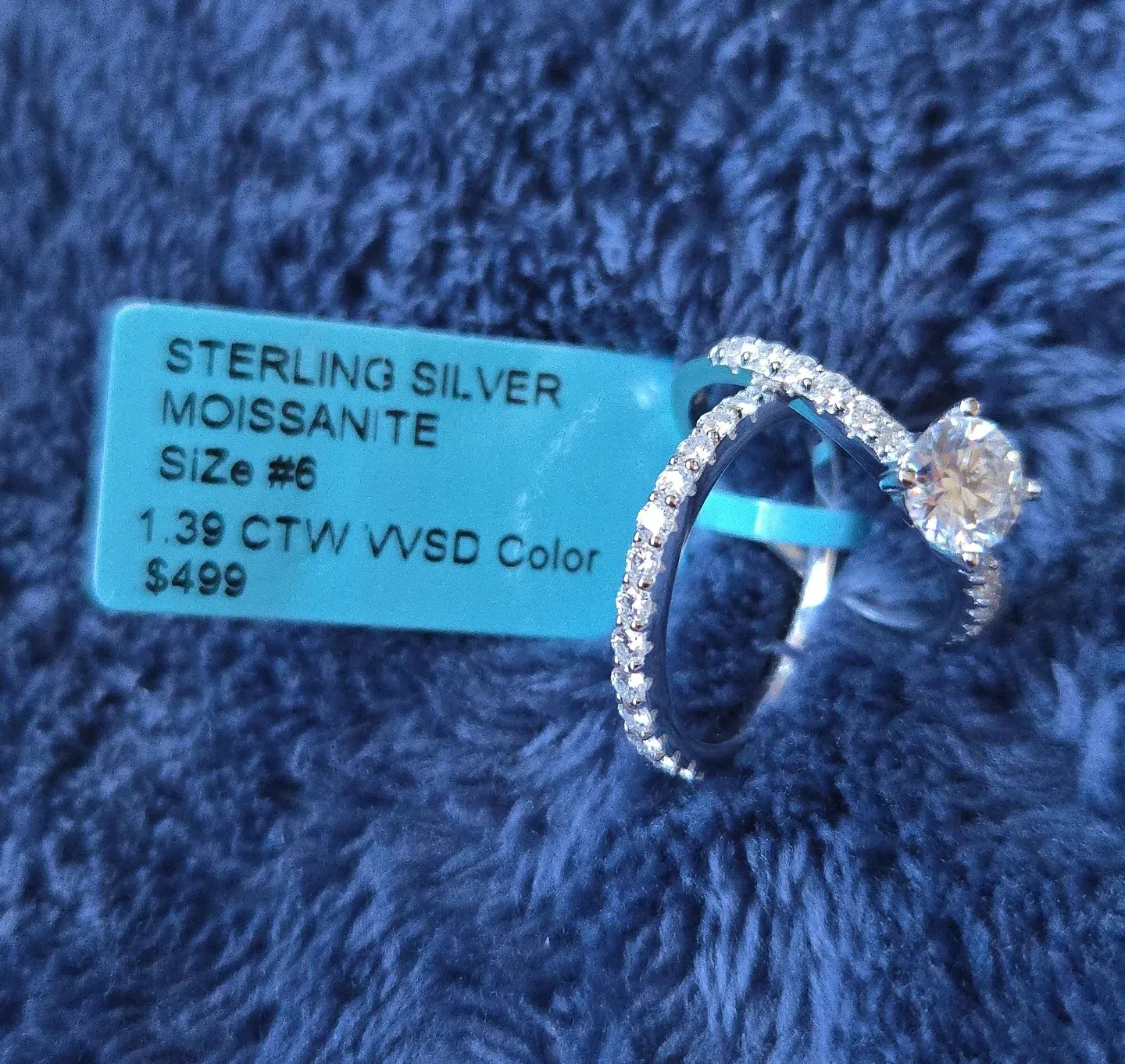 Selling a pair of beautiful sterling silver moissanite ring in size 6. It features a 1.39 CTW with VVSD color. Originally bought for $499