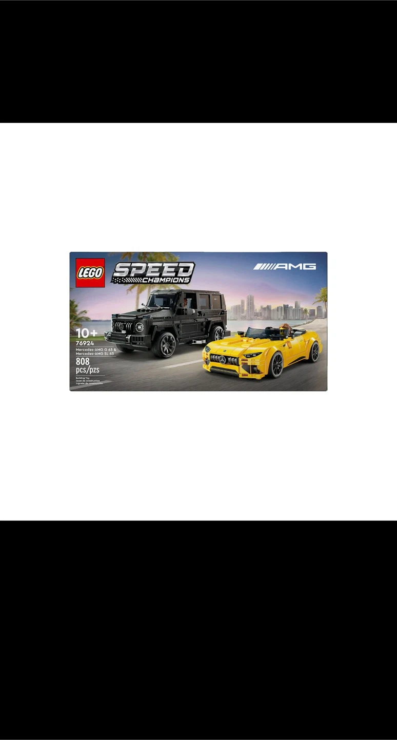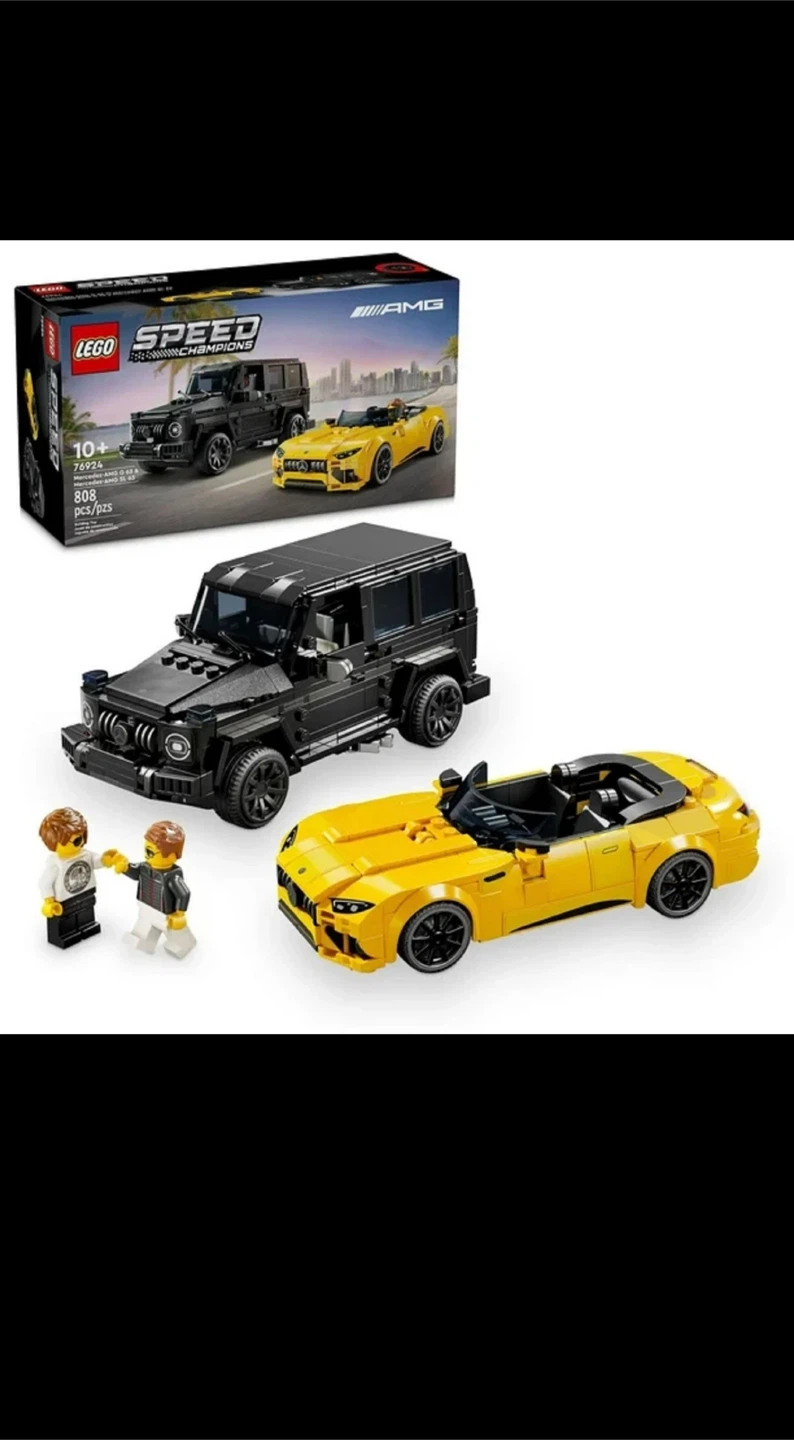 Selling a LEGO 76924 Speed Champions set featuring the Mercedes-AMG G 63 and SL 63 models. The set is designed for ages 10+ and contains 808 pieces to build both iconic cars. Perfect for LEGO enthusiasts and car lovers alike