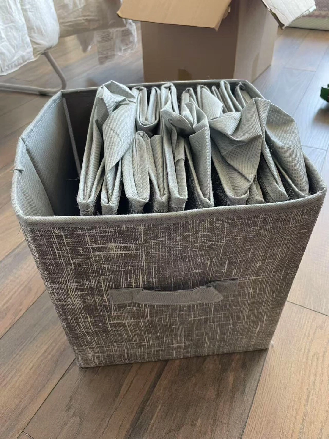 Selling a gray fabric storage bin! It comes with several inserts to help keep things organized. Great for closets, shelves, or under-bed storage. It's in good condition and ready for a new home