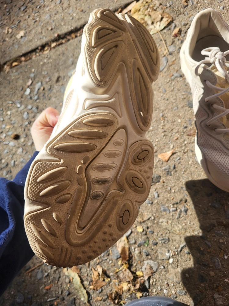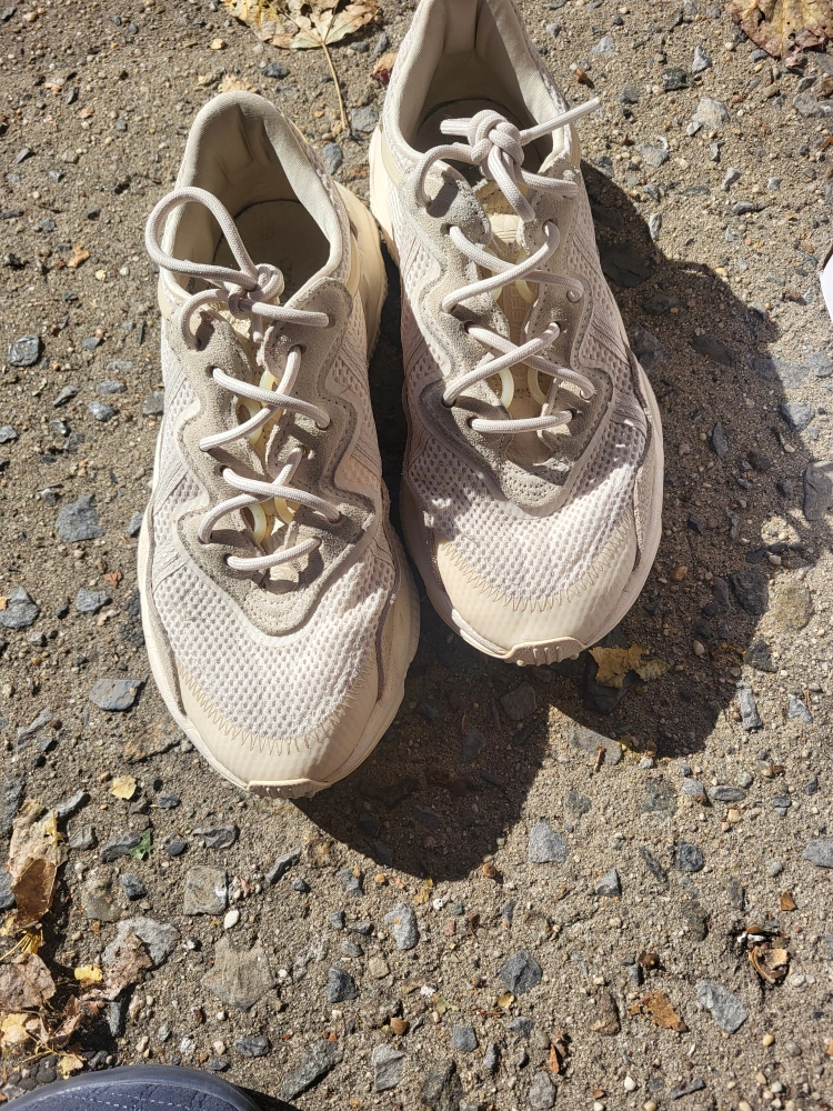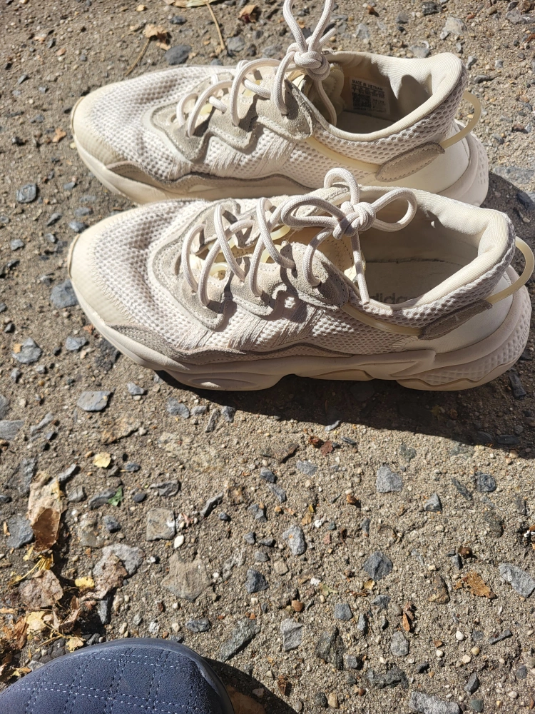 Selling a pair of Adidas Ozweego sneakers in beige. They have a unique design and are very comfortable for everyday wear. These sneakers are lightweight and provide great support. They are in good condition and ready for a new home!