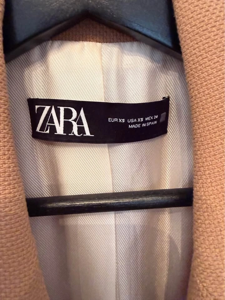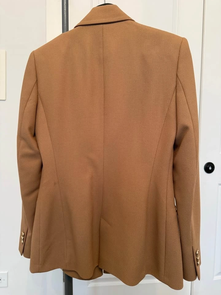 ZARA Camel Double-Breasted Blazer (Size XS) - Gold Buttons