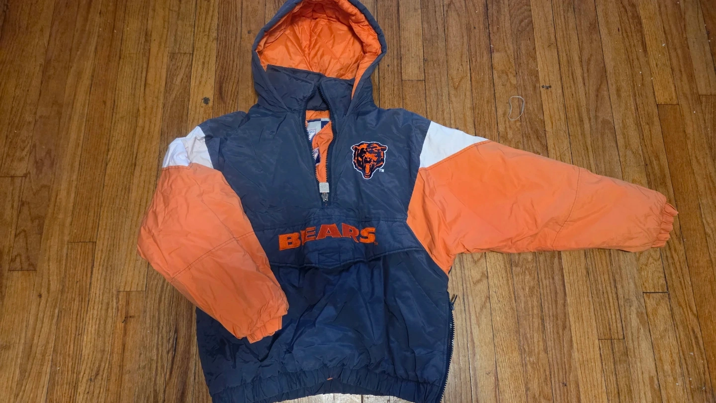 Selling a vintage Logo 7 Chicago Bears NFL pullover jacket. It's a size medium and features the Bears logo and colors. Great for any Bears fan!