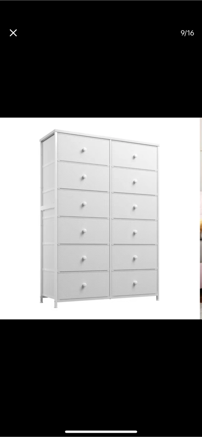 White dresser with multiple drawers. It is tall and narrow. A great place to organize your clothes and other belongings is inside the drawers.
