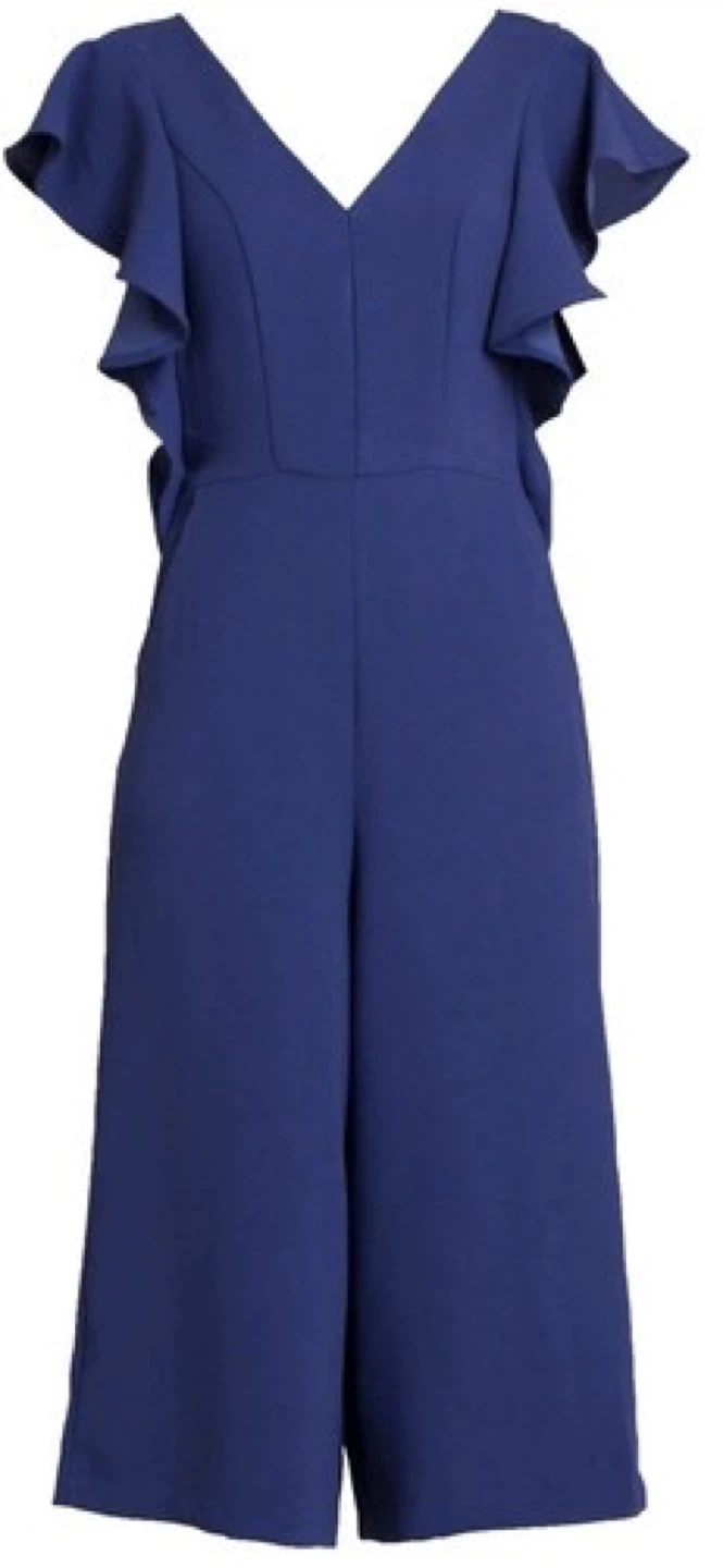 60Selling a beautiful Rachel Roy jumpsuit in a lovely shade of blue! It features a flattering V-neck and stylish flutter sleeves. Perfect for a special occasion or a night out. The jumpsuit is in excellent condition and ready for a new home