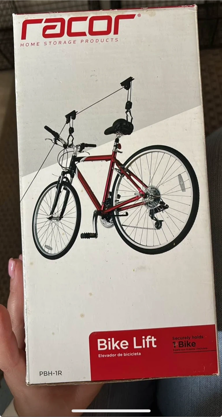 Selling a Racor Bike Lift, model PBH-1R, for home storage. It securely holds your bike and helps save space. Great for keeping your garage or storage area organized!
