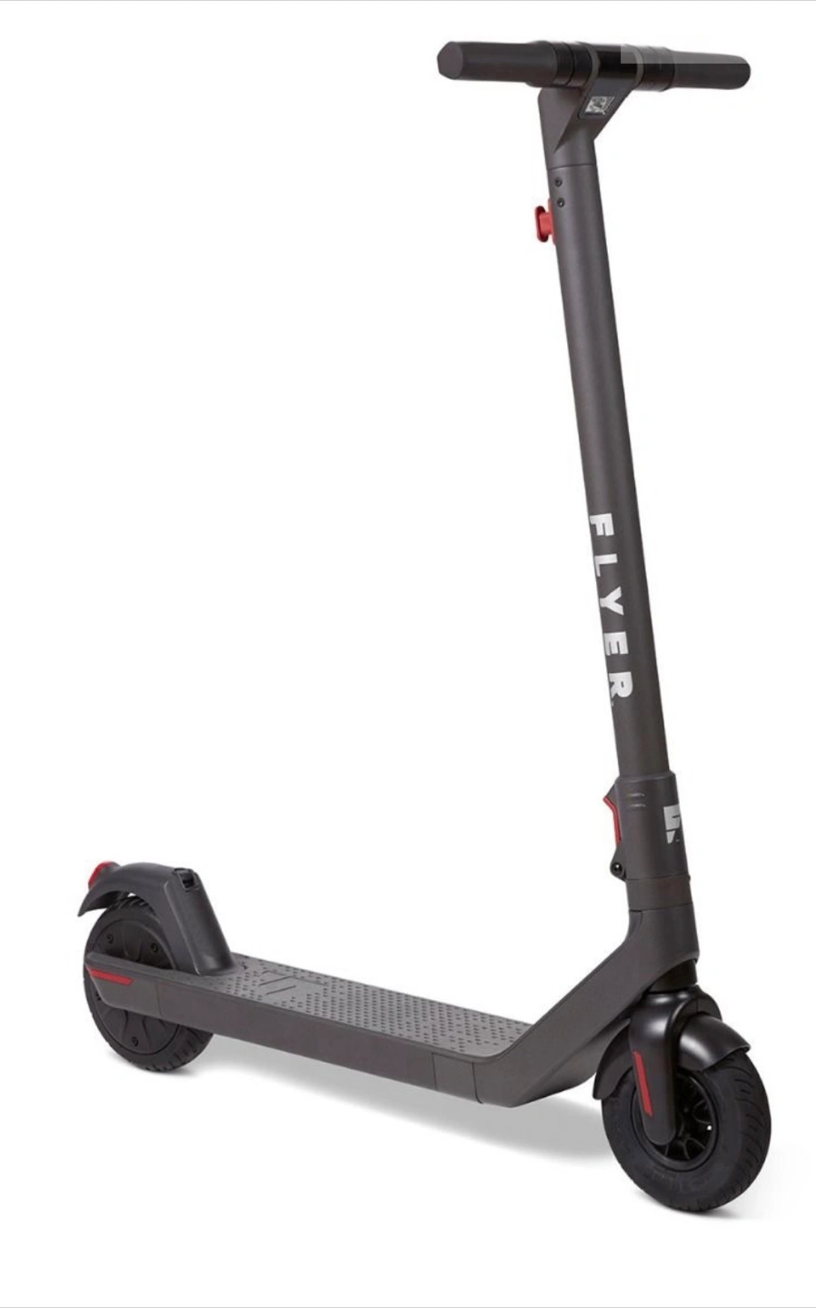 For commuting, running errands, and having fun: the Flyer™ S533 foldable electric scooter is a convenient and sustainable micro-mobility solution for urban adults infused with the joy of riding. Radio Flyer S533 Folding Eclectic Scooter Model #533 in GREY. New in manufacturer's box. Never opened. This scooter retails for $599 plus tax. Tires : front 7.9" air tire rear 7.9" puncture proof tire Max load: 220 lbs Product weight: 30.2 lbs Range:15.5 miles Top speed: 16 mph Display: speedometer. battery life, 3 speed modes Motor wattage: 250 watts Braking: electrical regenerative and stomp brakes Warranty: refer to Radio Flyer website for details Requires easy assembly. The handlebar needs to be attached to the vertical tube and fastened with 4 screws. Measurements folded: 39" x18.5" x 16" See unfolded measurements below Any questions, please reach out and ask