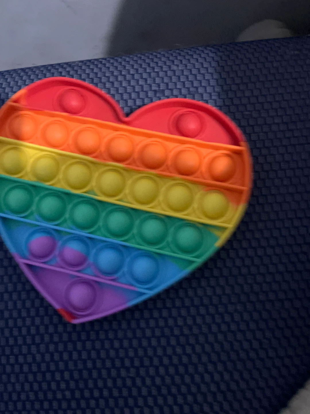 Selling a rainbow heart-shaped Pop It fidget toy! It's in great condition and ready for a new home. Perfect for stress relief and fun