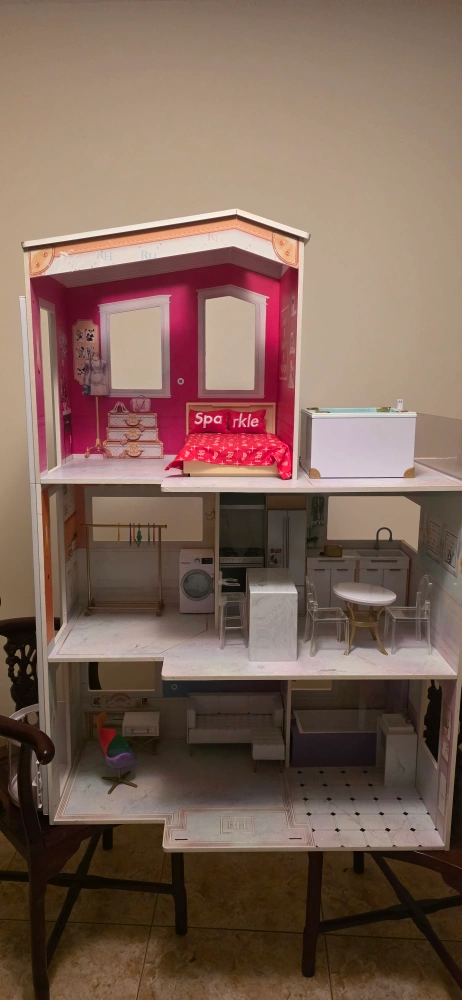 Selling a Rainbow High dollhouse that's in great condition! It includes several rooms with furniture like a bed, kitchen, living room, and bathroom. Perfect for any Rainbow High fan! 3 ft. tall.