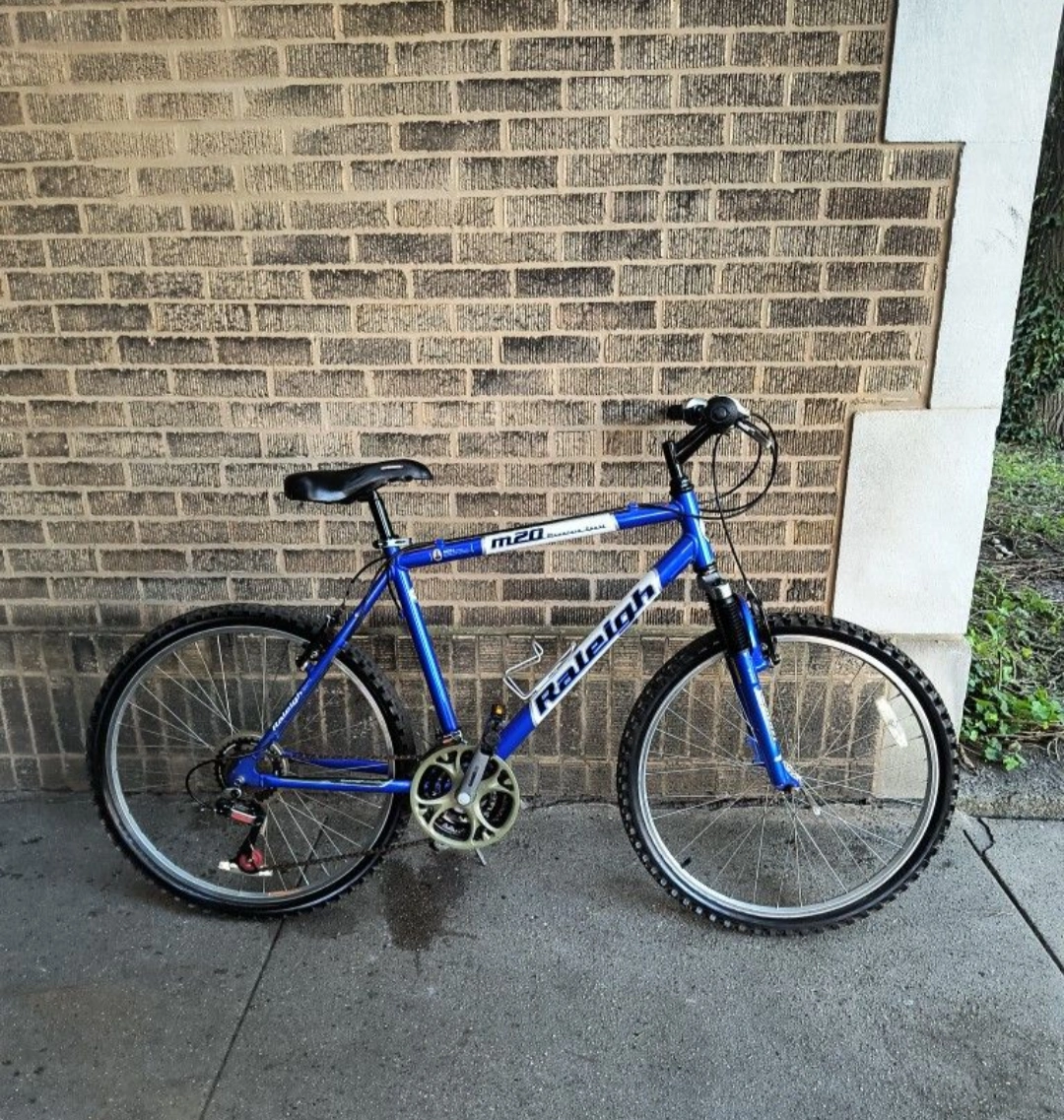 Selling a blue Raleigh M20 mountain bike! It's in GREAT condition and ready for some adventures on trails or just cruising around the neighborhood
