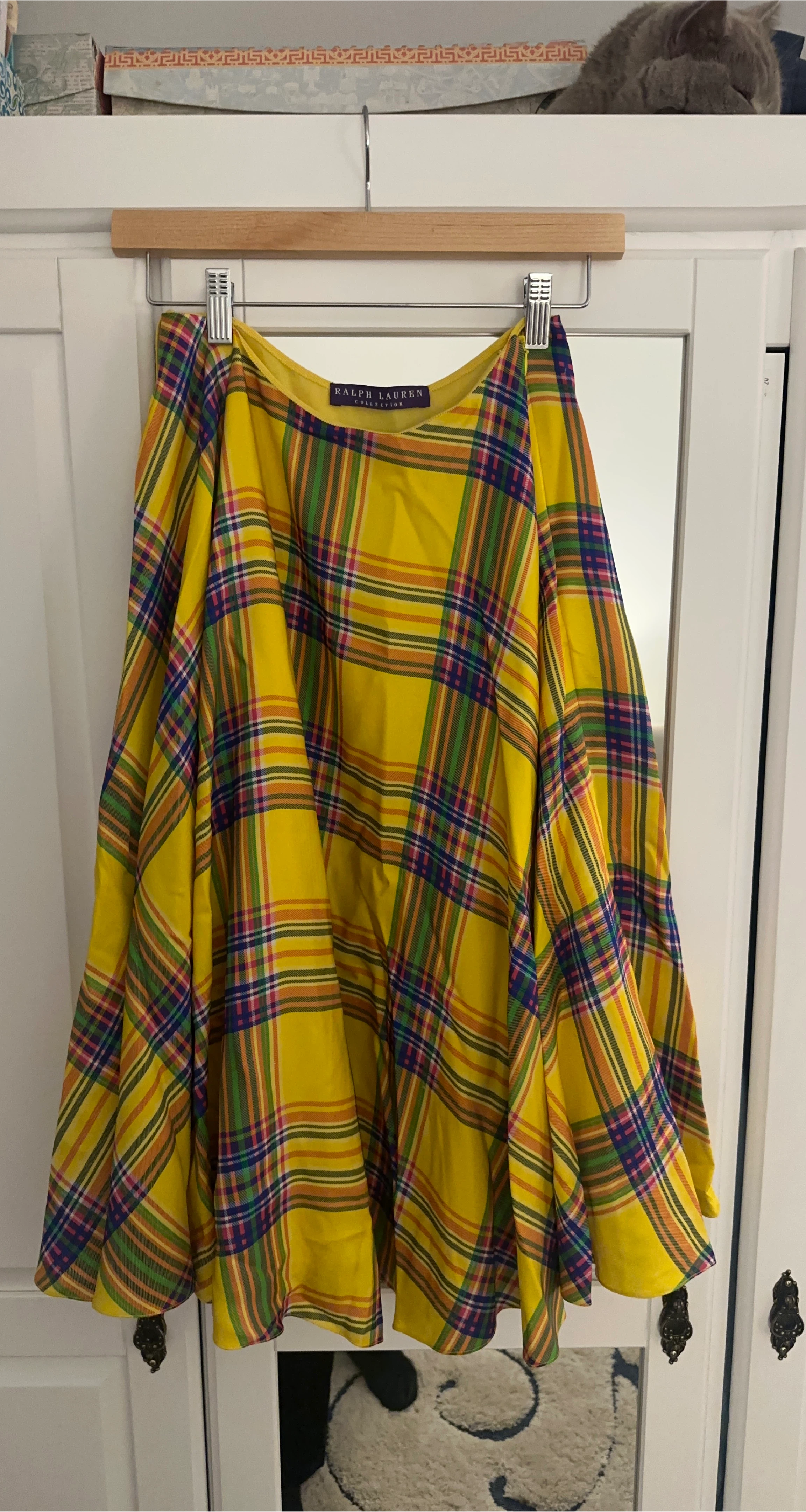 5Selling a vibrant yellow plaid skirt from Ralph Lauren Collection! It's in good condition and perfect for adding a pop of color to your wardrobe.