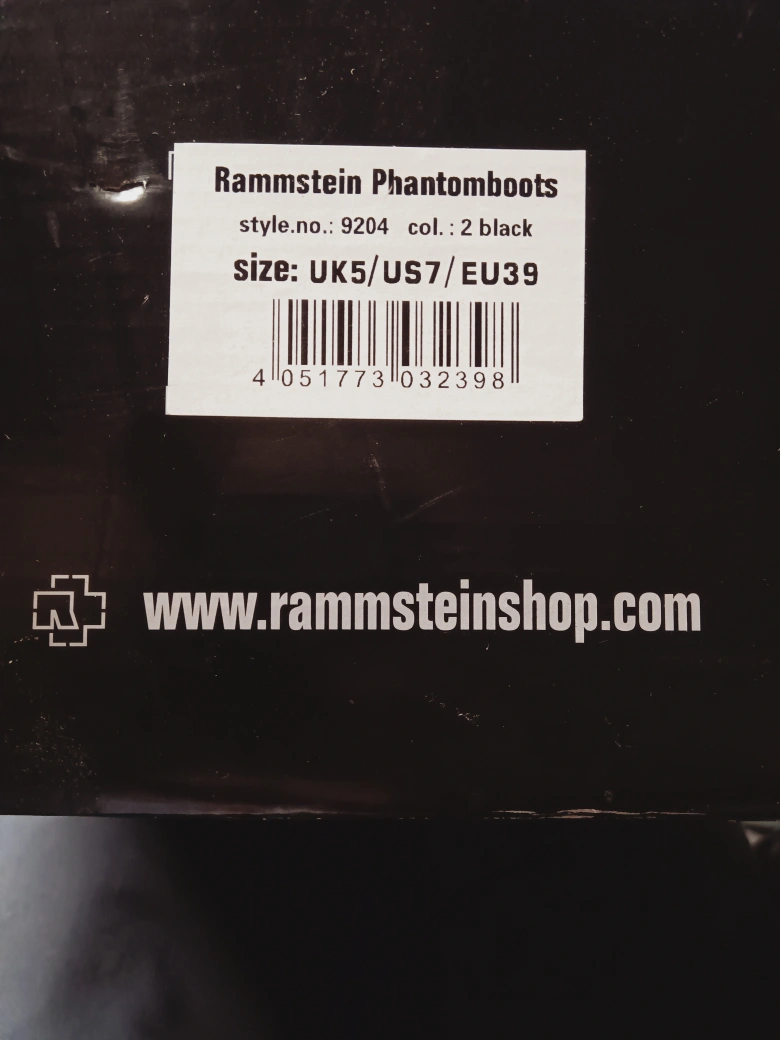 60Selling a pair of Rammstein Phantomboots in black! They are a US size 7, which is a UK size 5 or EU size 39. These boots are in great condition and come in the original box