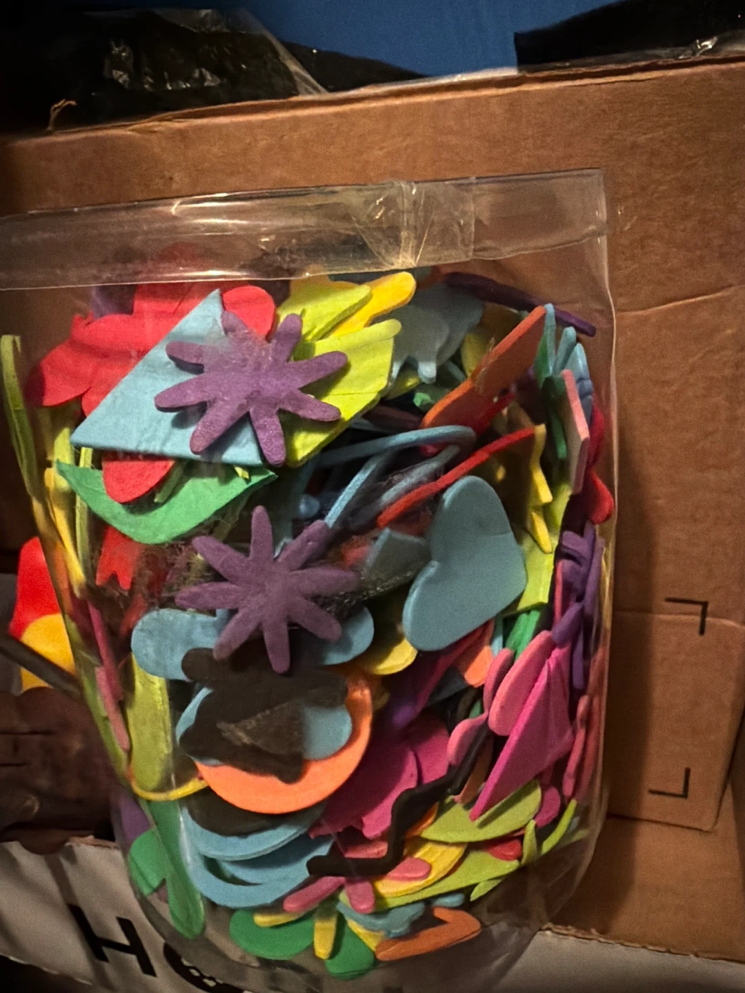 629Selling a bag full of colorful foam craft shapes! Perfect for kids' projects or any DIY crafts. They're in great condition and ready for a new home