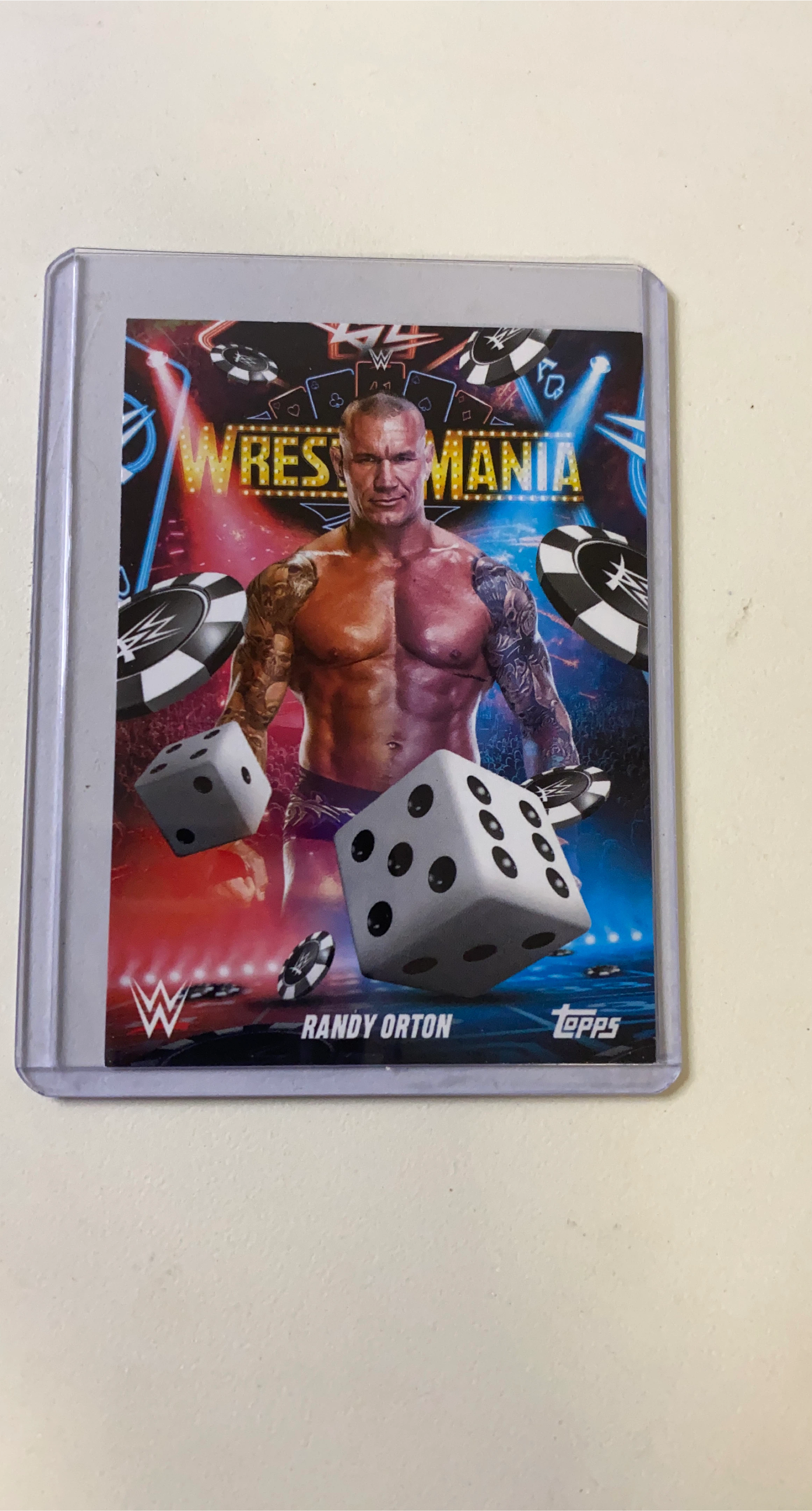 76Selling a Randy Orton Topps WWE trading card. Features a cool WrestleMania design!