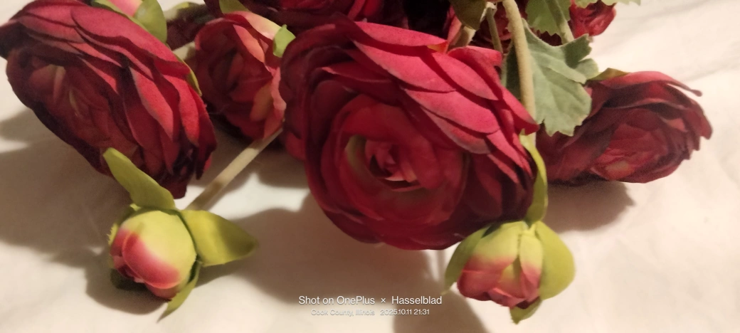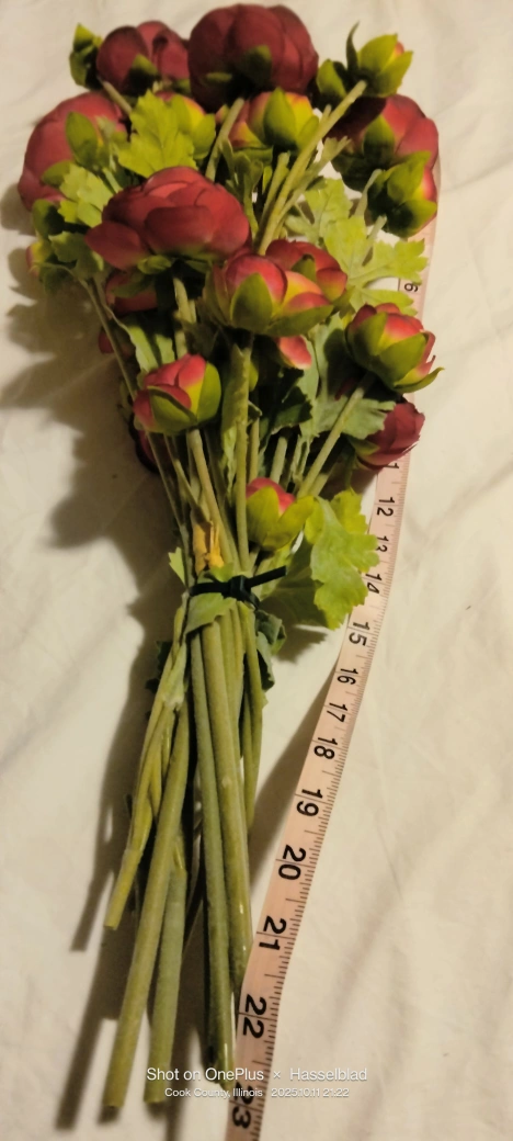 Burgundy ranunculus flower artificial bouquet, about 30 heads different sizes most 20". New left overs from our project.