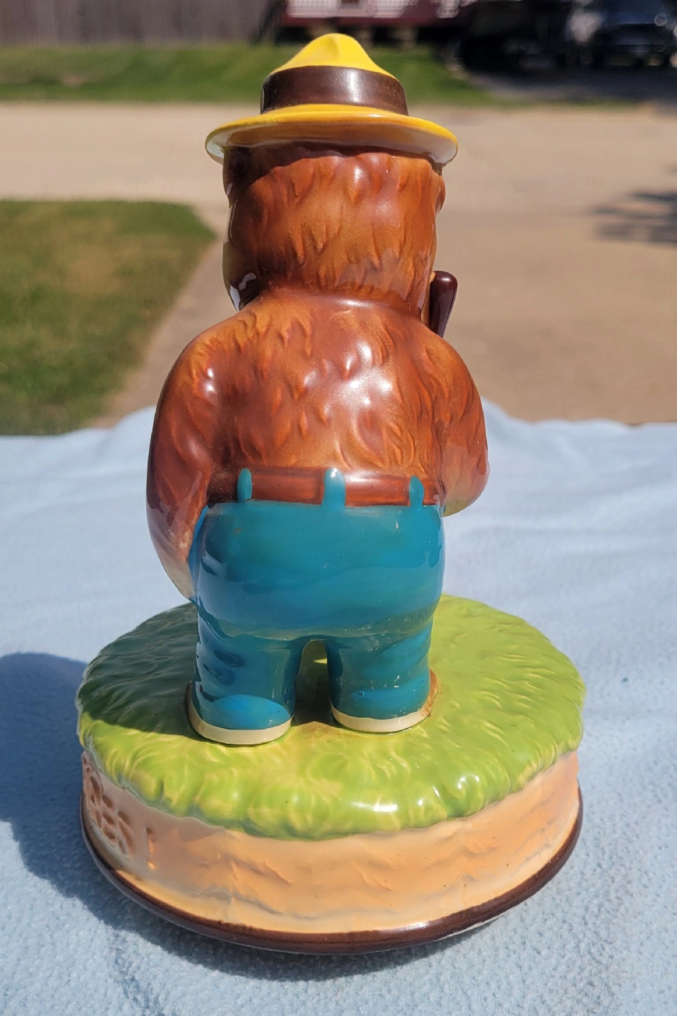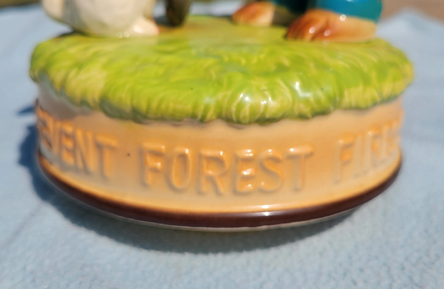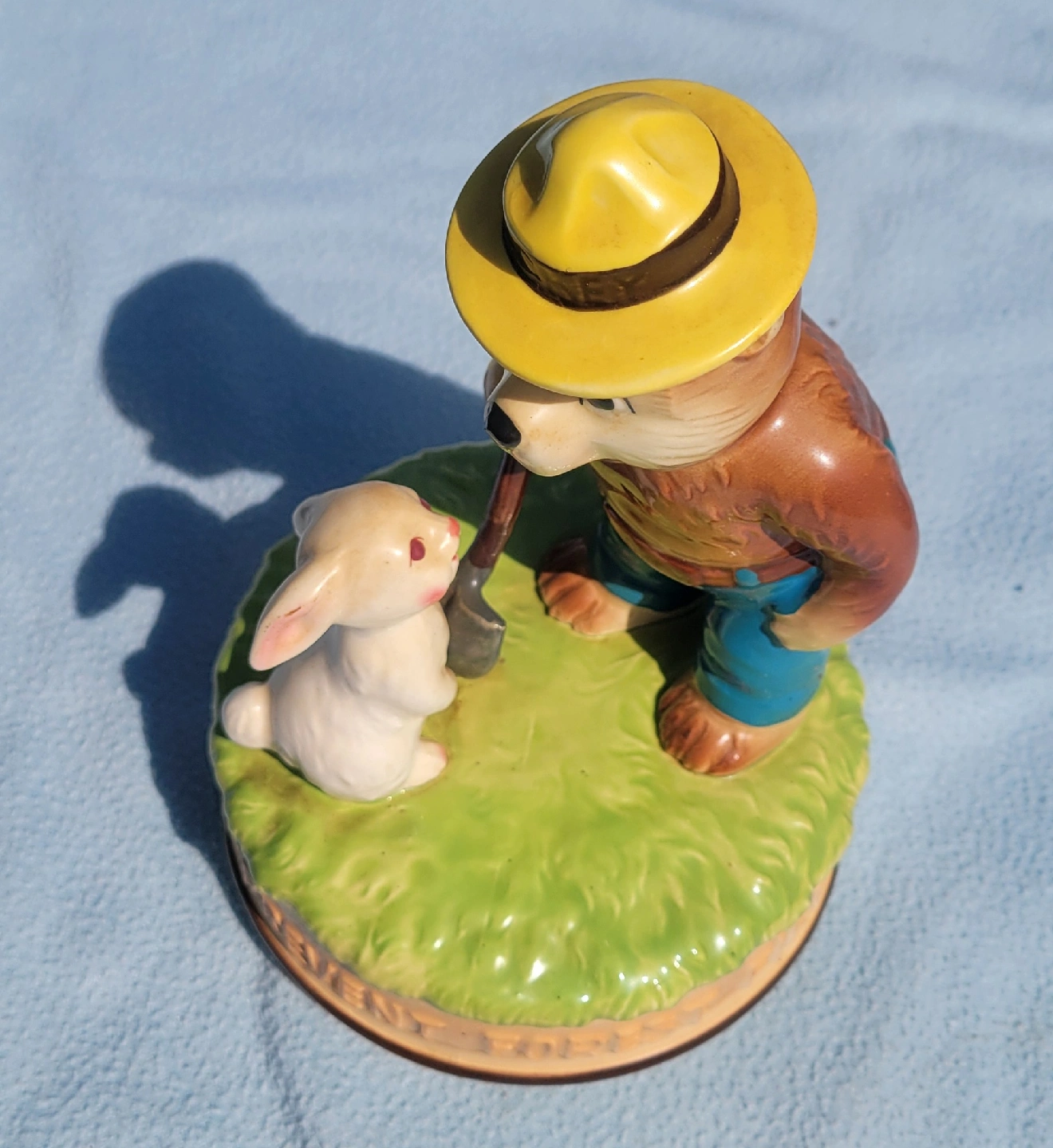 This is a vintage Smokey Bear Music box featuring Smokey with a rabbit. The base reads "Prevent Forest Fires" and it looks to be in perfect condition! It works as should!