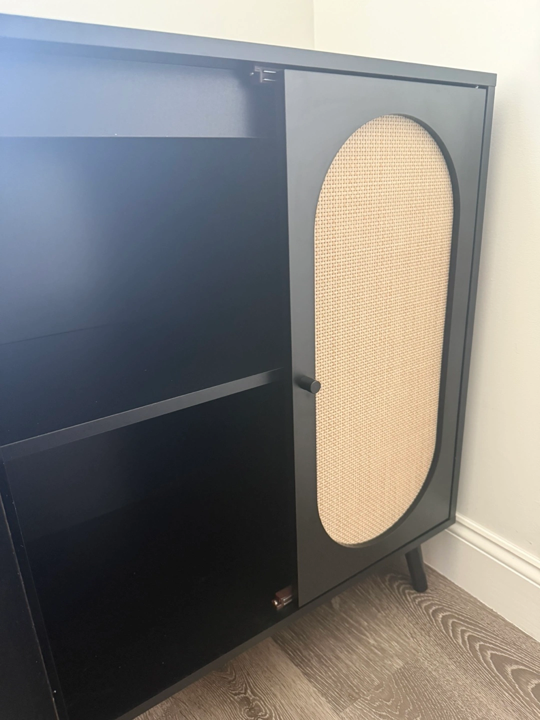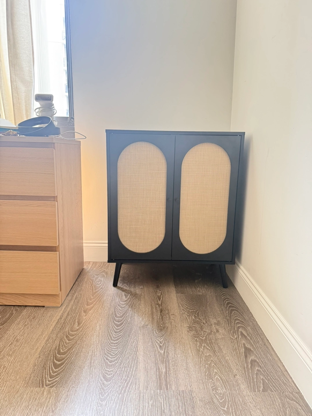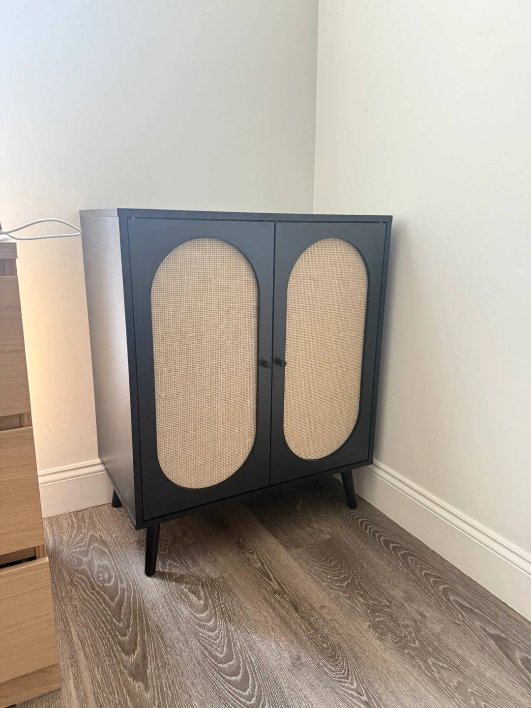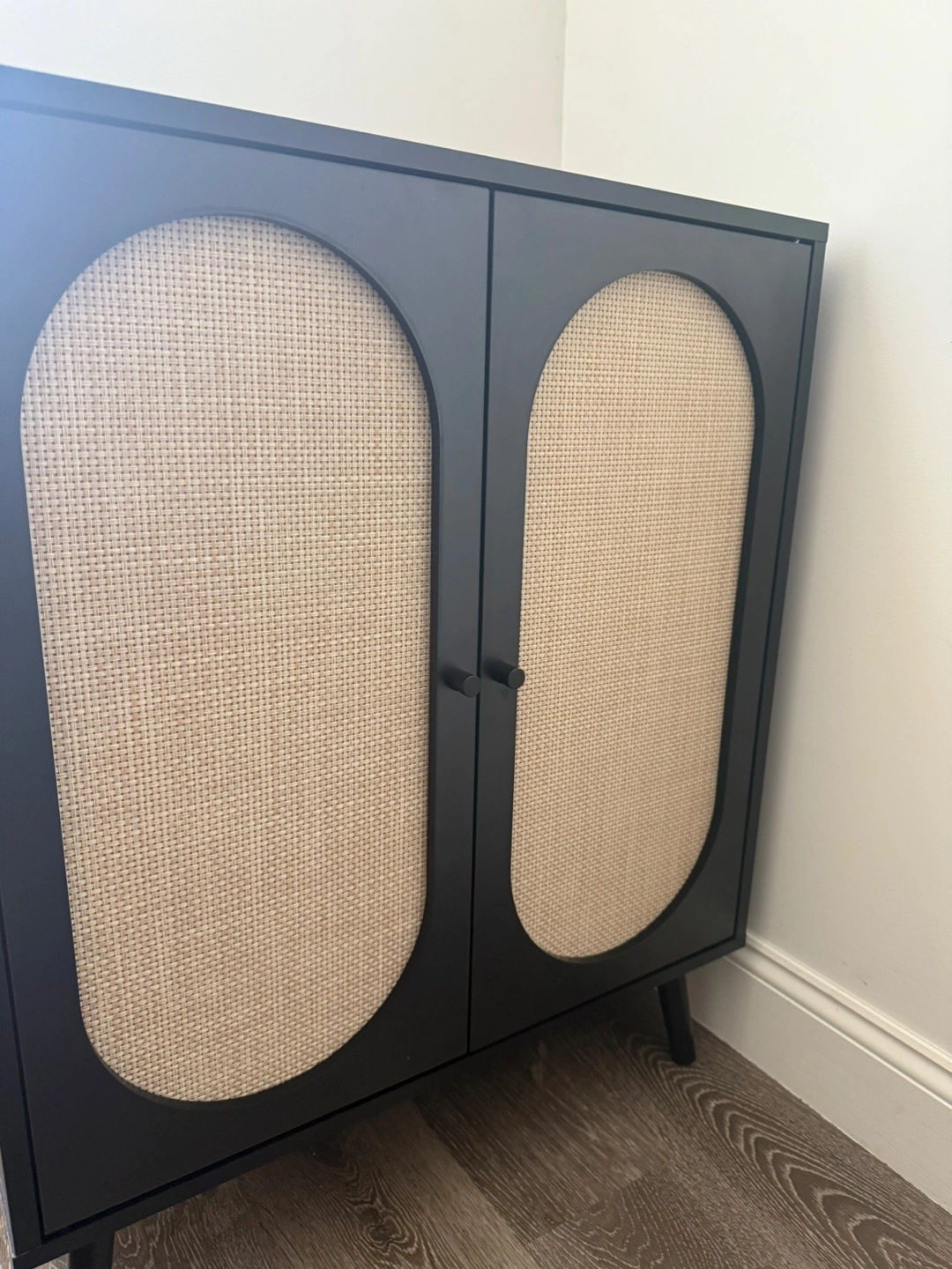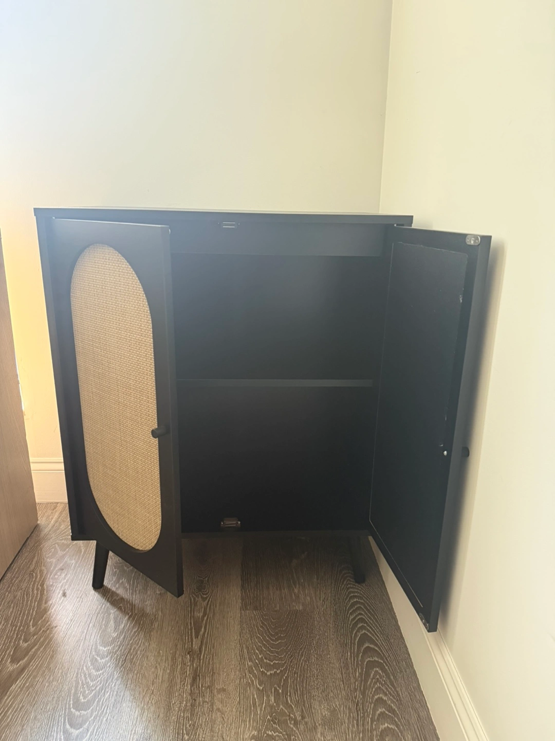 117Brand new black Rattan 2 Doors Buffet Sideboard Cabinet, 2 Tier Adjustable Shelves. Just assembled, a bit too deep for my space. Dimension: W26.77” x H32.87” x D15.75”. Also have another one still in package that hasn’t been assembled that will be easy for transporting. Pick up from queens Elmhurst