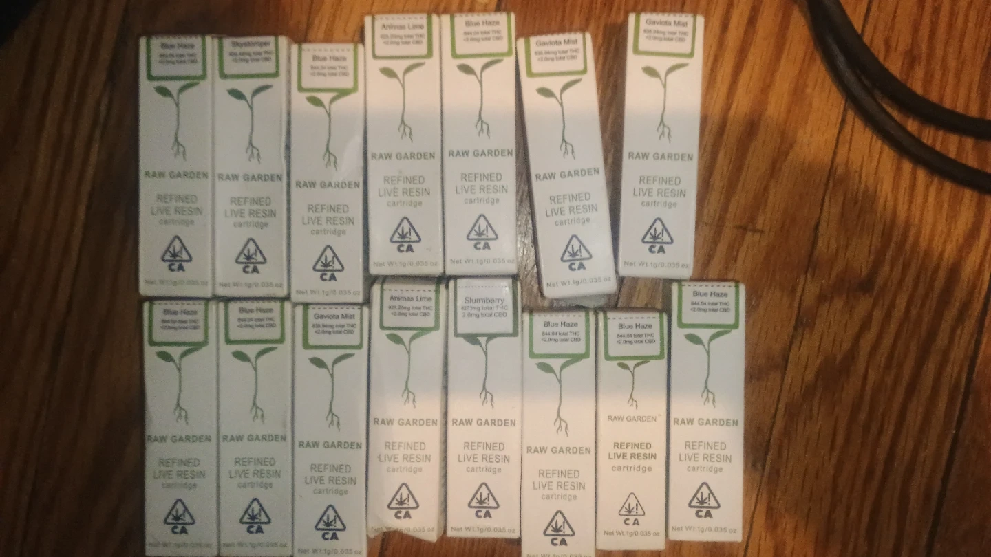 60I have several Raw Garden Refined Live Resin cartridges available. They are all net wt 1g/0.035 oz. Flavors include Blue Haze, Gaviota Mist, Animas Lime and Slumberry.