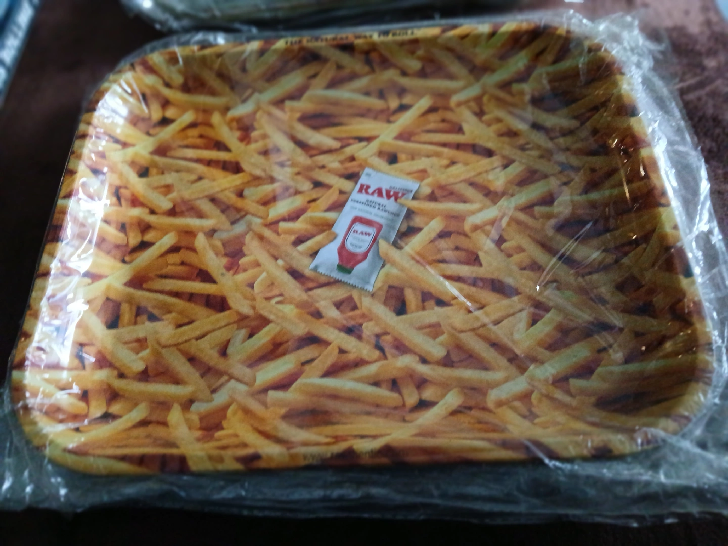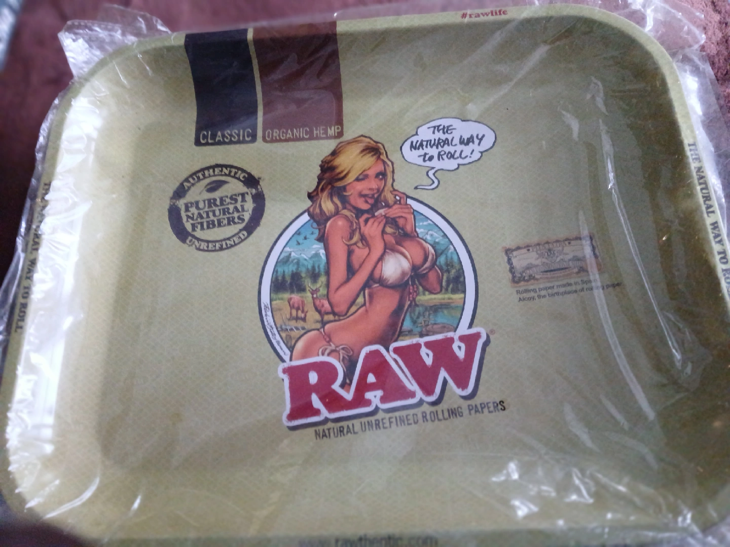 Selling a variety of RAW rolling trays, still sealed in plastic! There's a camo design, a forest scene, and one with french fries. Perfect for any RAW enthusiast!