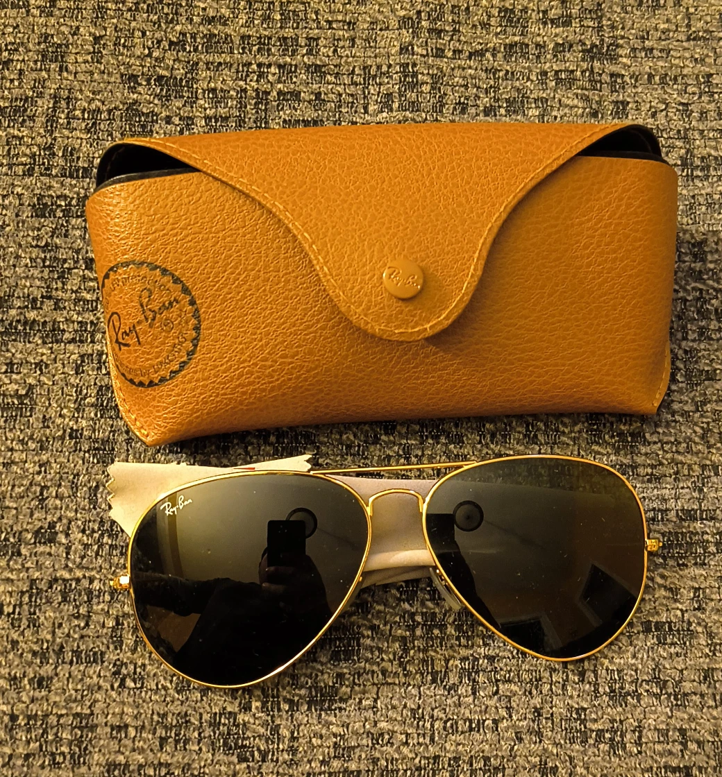 21Selling a pair of classic Ray-Ban Aviator sunglasses. They come with their original case and a cleaning cloth to keep them looking their best