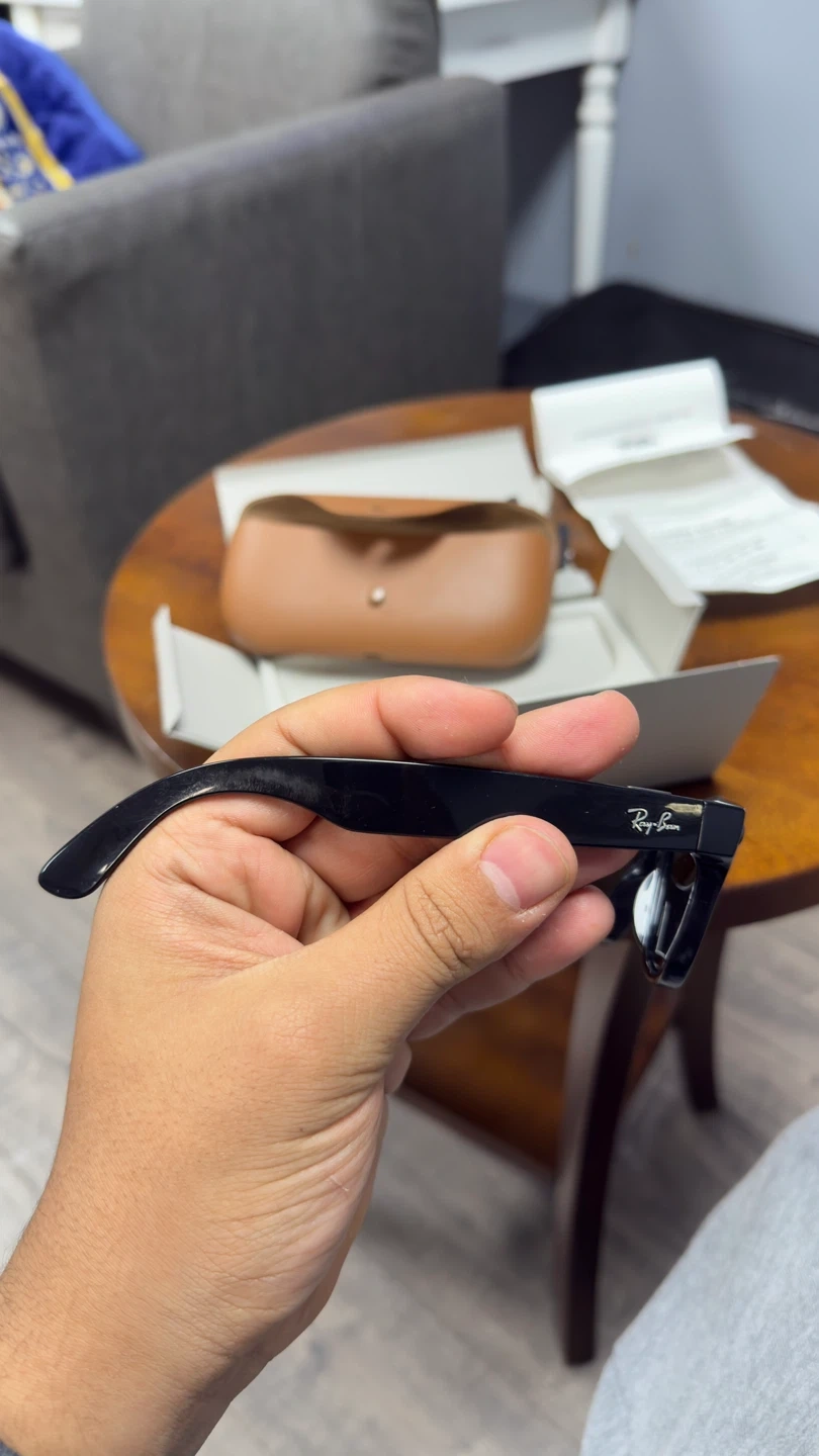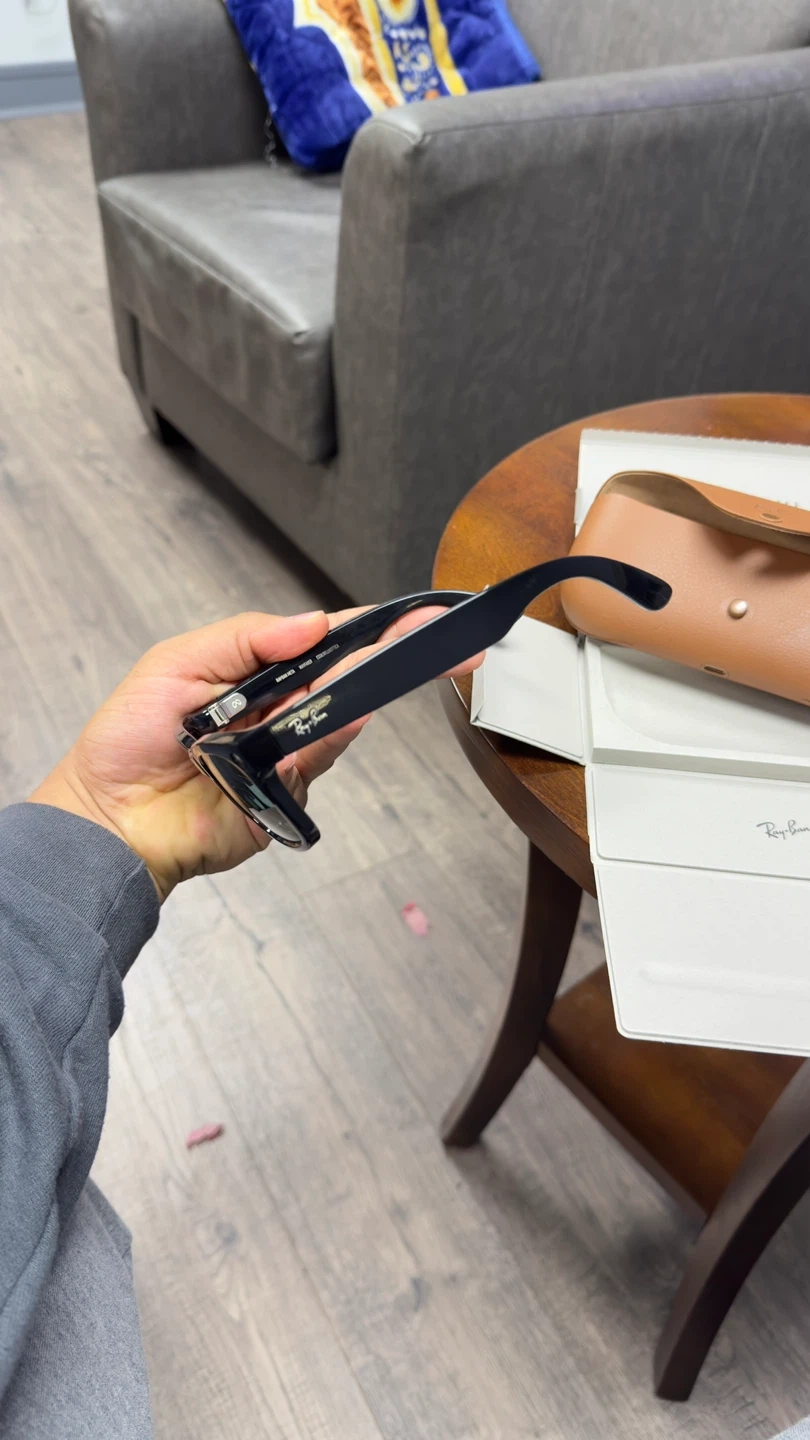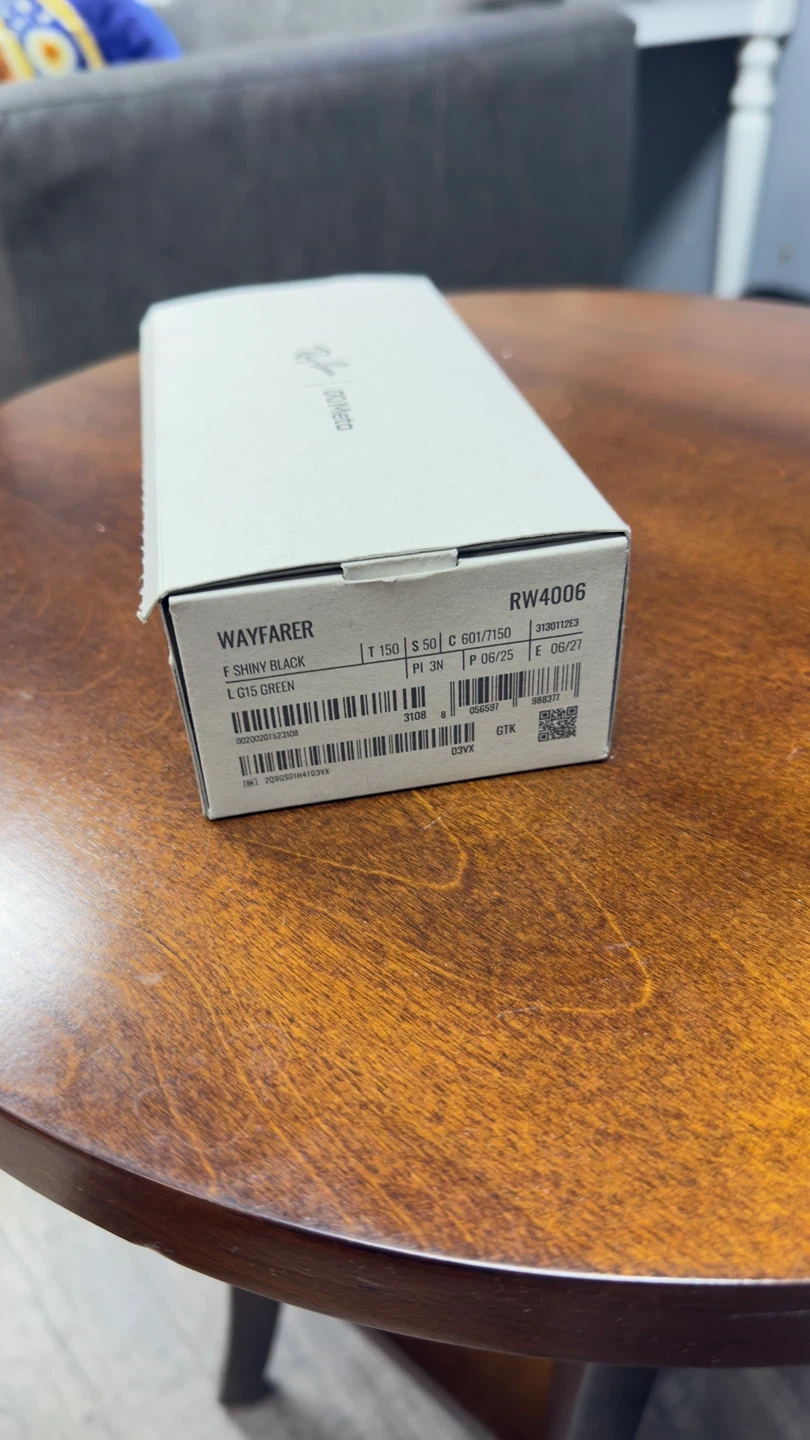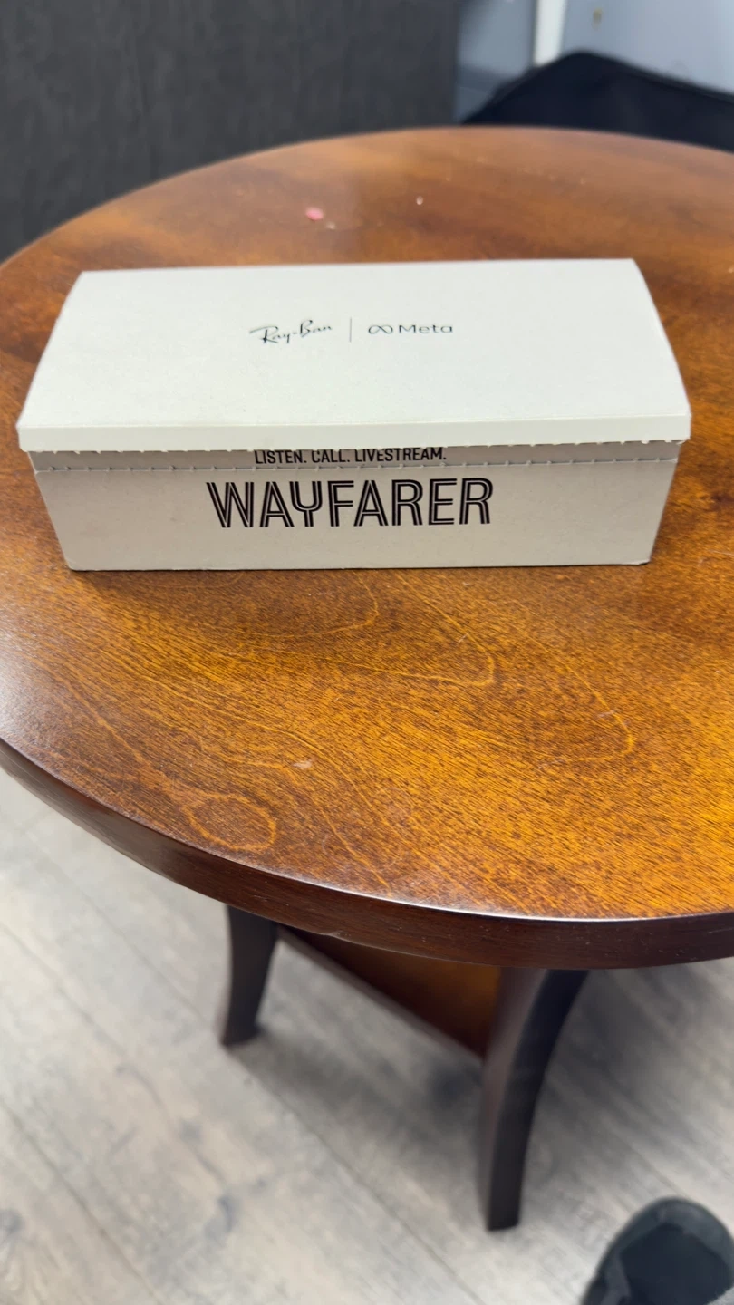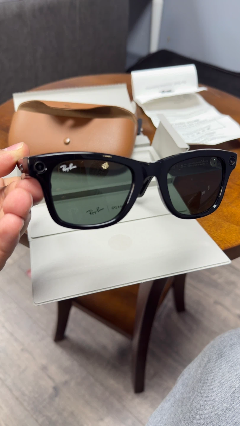 Selling a pair of Ray-Ban Meta Wayfarer sunglasses in shiny black! They come with a green lens and include the original box and case