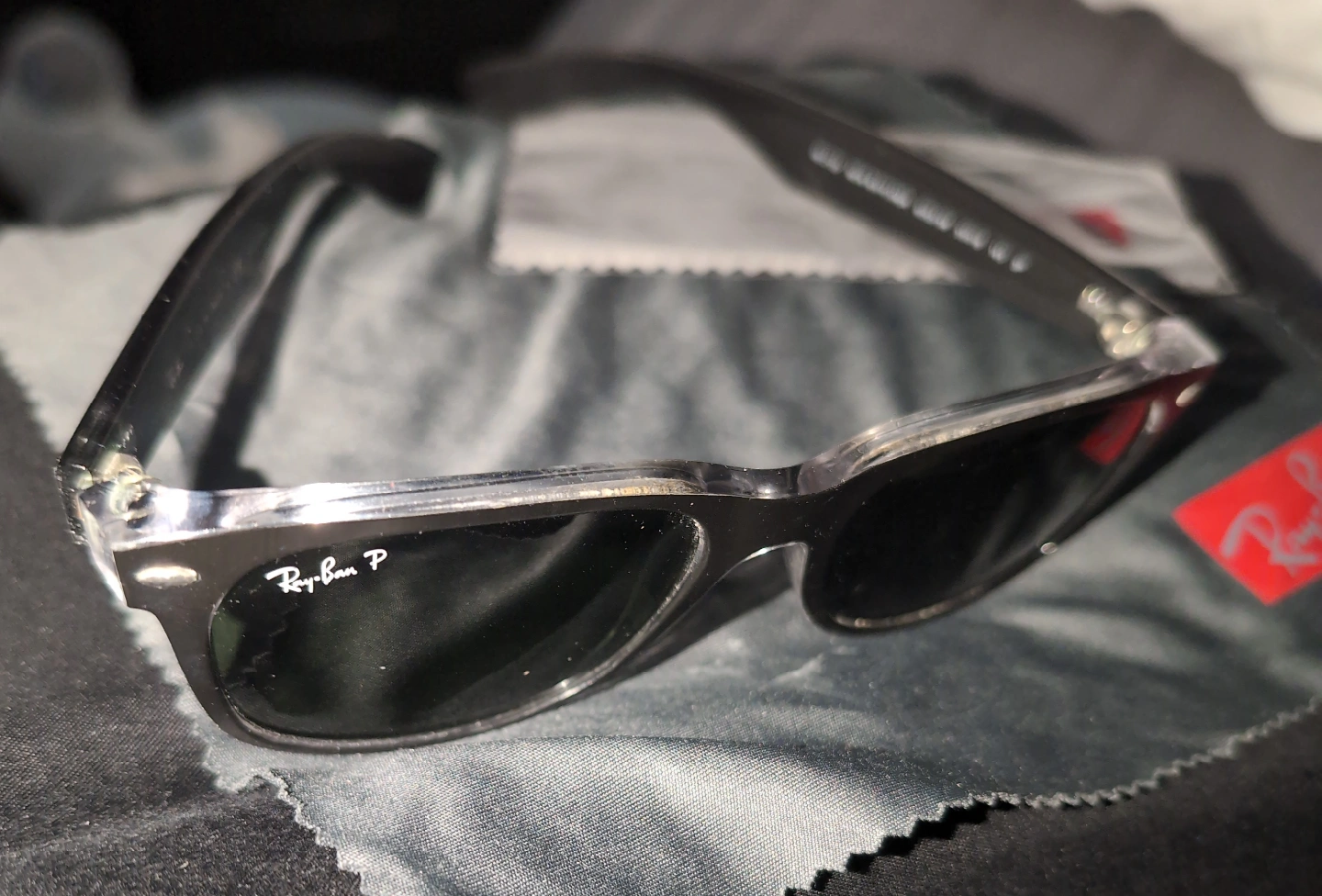 Selling a pair of Ray-Ban P sunglasses. They come with a case and cleaning cloth. The sunglasses are in good condition and ready for a new owner