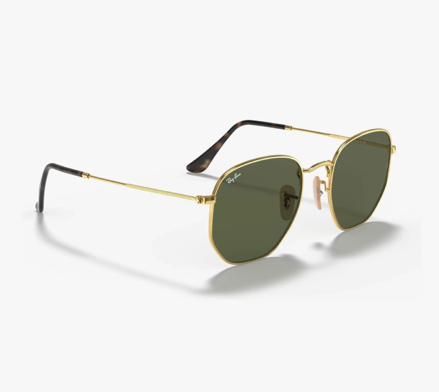 Selling a pair of Ray-Ban RB3648 The Marshal sunglasses in gold with green lenses. These sunglasses feature a unique geometric shape and a sleek gold frame, making them a stylish accessory for any outfit. They are in great condition and ready for a new owner!